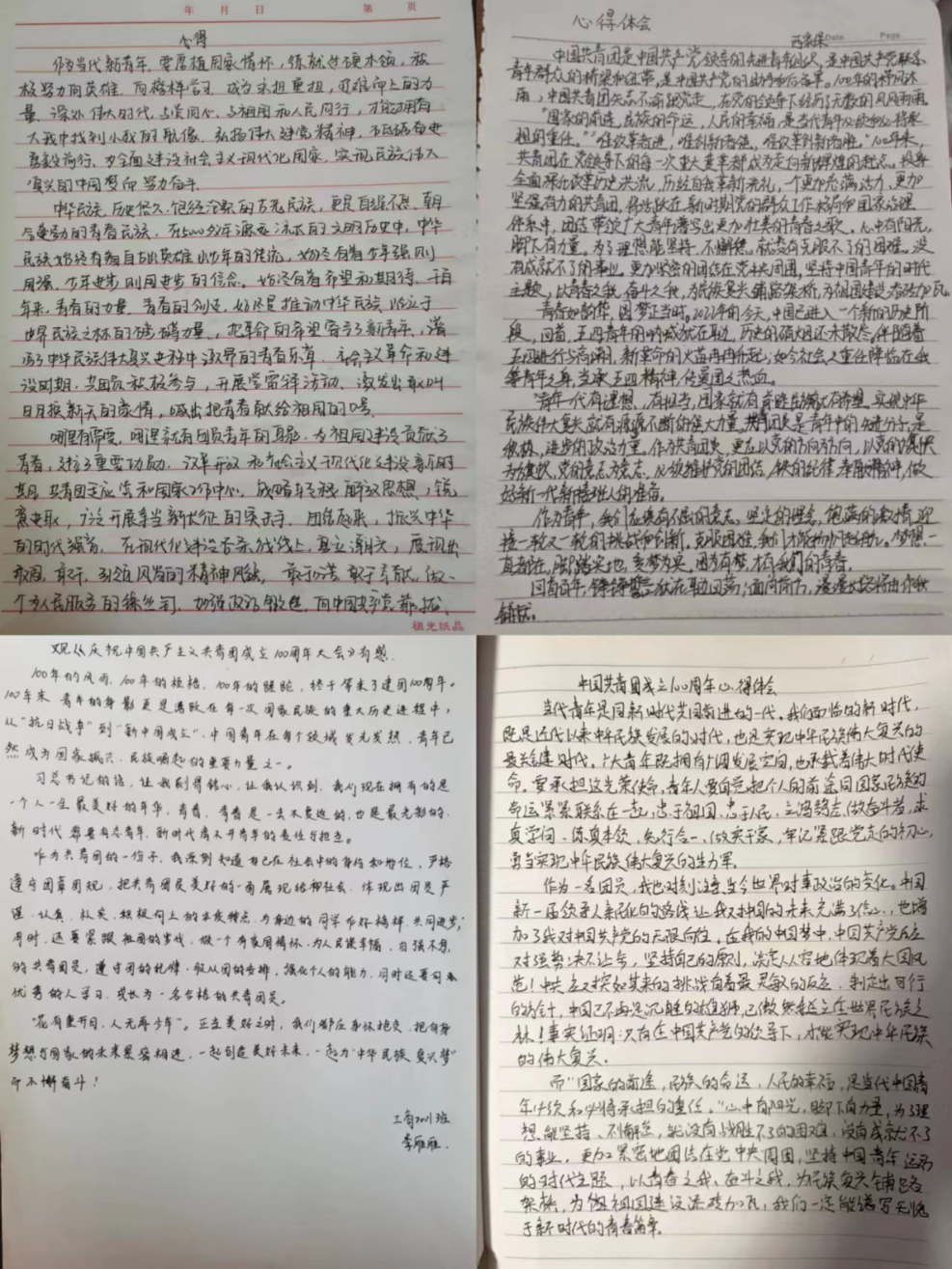 人力1901班同学认为,一百年来,在党的坚强领导下,共青团不忘初心、牢记使命,走在青年前列,组织引导一代又一代青年坚定信念、紧跟党走,为争取民族独立、人民解放和实现国家富强、人民幸福而贡献力量,谱写了中华民族伟大复兴进程中激昂的青春乐章。作为新时代青年的我们,要坚定不移跟党走,为党和人民奋斗,践行共青团的初心使命。我们要以党的旗帜为旗帜,党的意志为意志,党的方向为方向,必须维护党的团结,铁的纪律,奉献精神,要做好新一代接班人的准备。