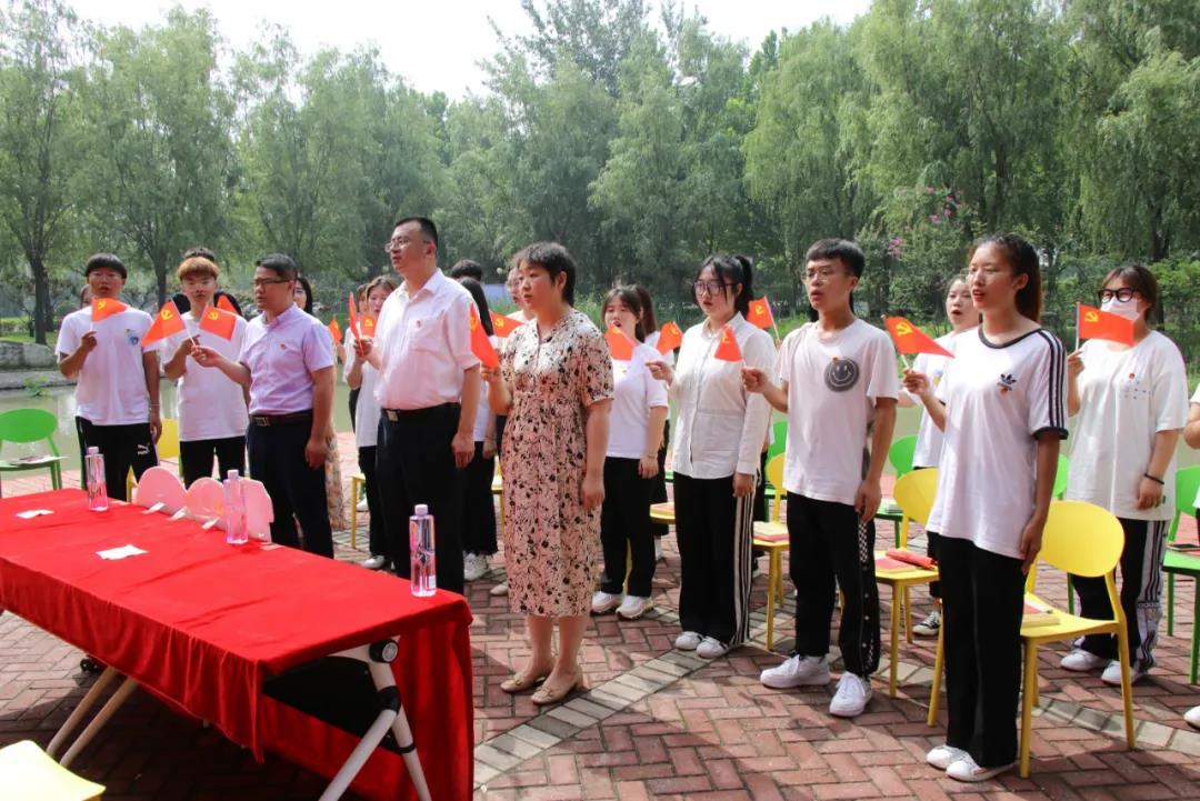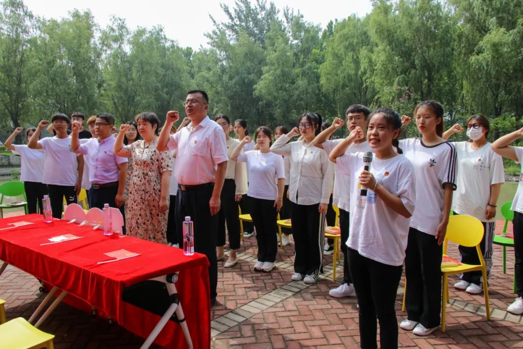面向鲜红的党旗,由杜向宇同学作为领誓人,全体参会人员举起右手庄严宣誓,在铮铮誓言中,坚定理想信念,牢记职责使命。