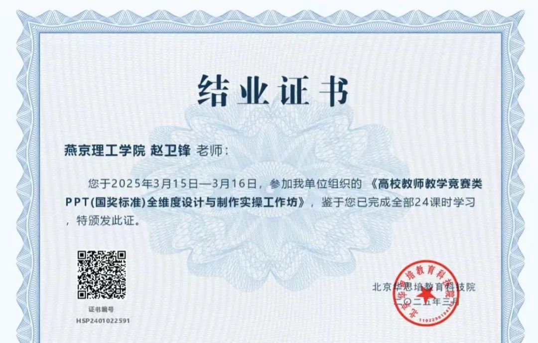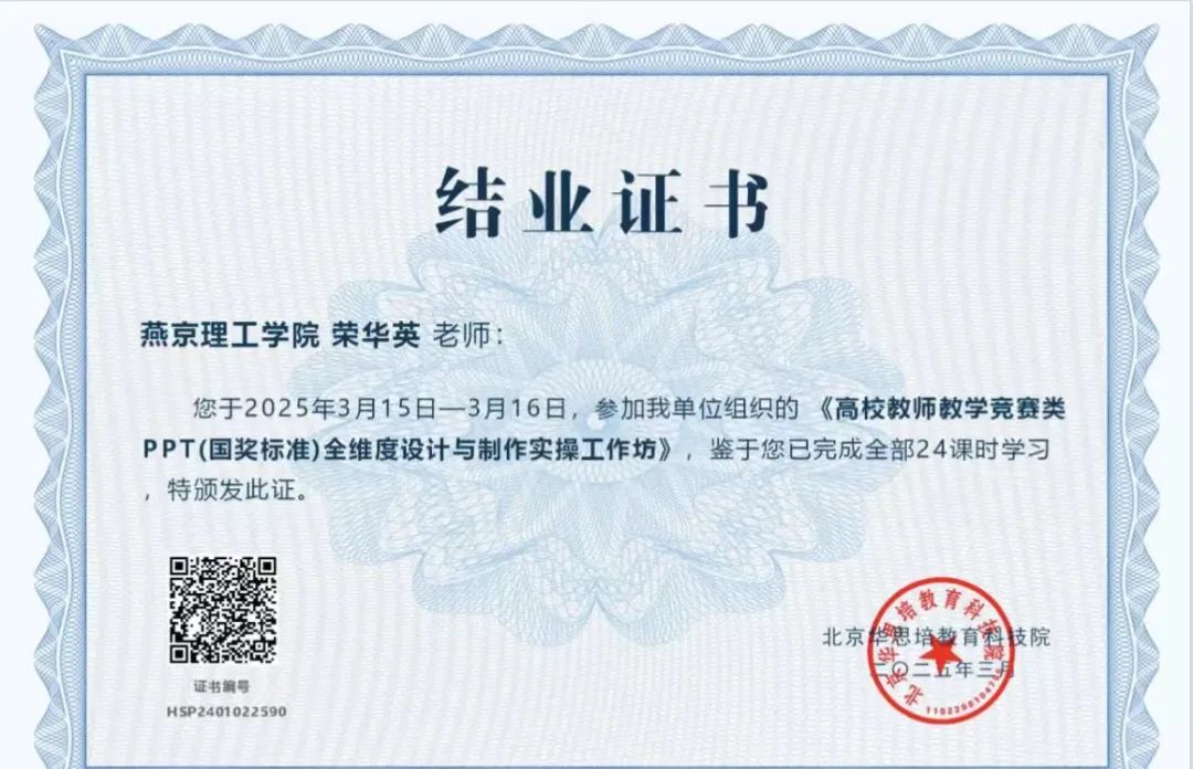2025年3月14日至17日,由北京华思培教育科技院主办,湖北金师学堂教育科技有限公司、武汉市龙海洪顺会展有限责任公司协办的“高校教师教学竞赛类PPT(国奖标准)全维度设计与制作实操工作坊”成功举办。数字经济产业学院积极响应教学创新号召,组织赵卫锋、荣华英和任娟梅三位教师参与此次培训,助力教师提升教学课件设计能力,赋能课堂艺术与竞赛实力。