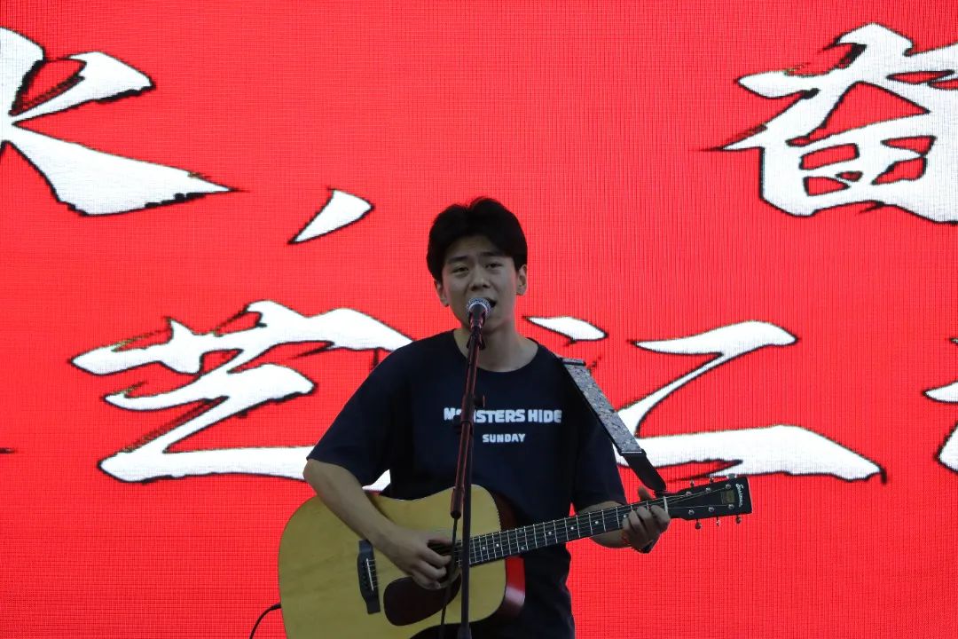随后,学弟学妹们为毕业的学姐学长们带来了朗诵《毕业季之青春续》——季忆留夏,青春有你,字里行间皆满怀希望与不舍。歌舞表演《left right》、《星辰大海》以及吉他弹唱《稻香》、《最美的太阳》为毕业生们送上了最后的祝福。大四毕业生与辅导员共同带来的《想把我唱给你听》、《光阴的故事》《奔跑》三首歌曲的串烧瞬间点燃了体育馆的热情,他们唱出了对大学生活的留恋与不舍,也唱出了对未来的无限憧憬。