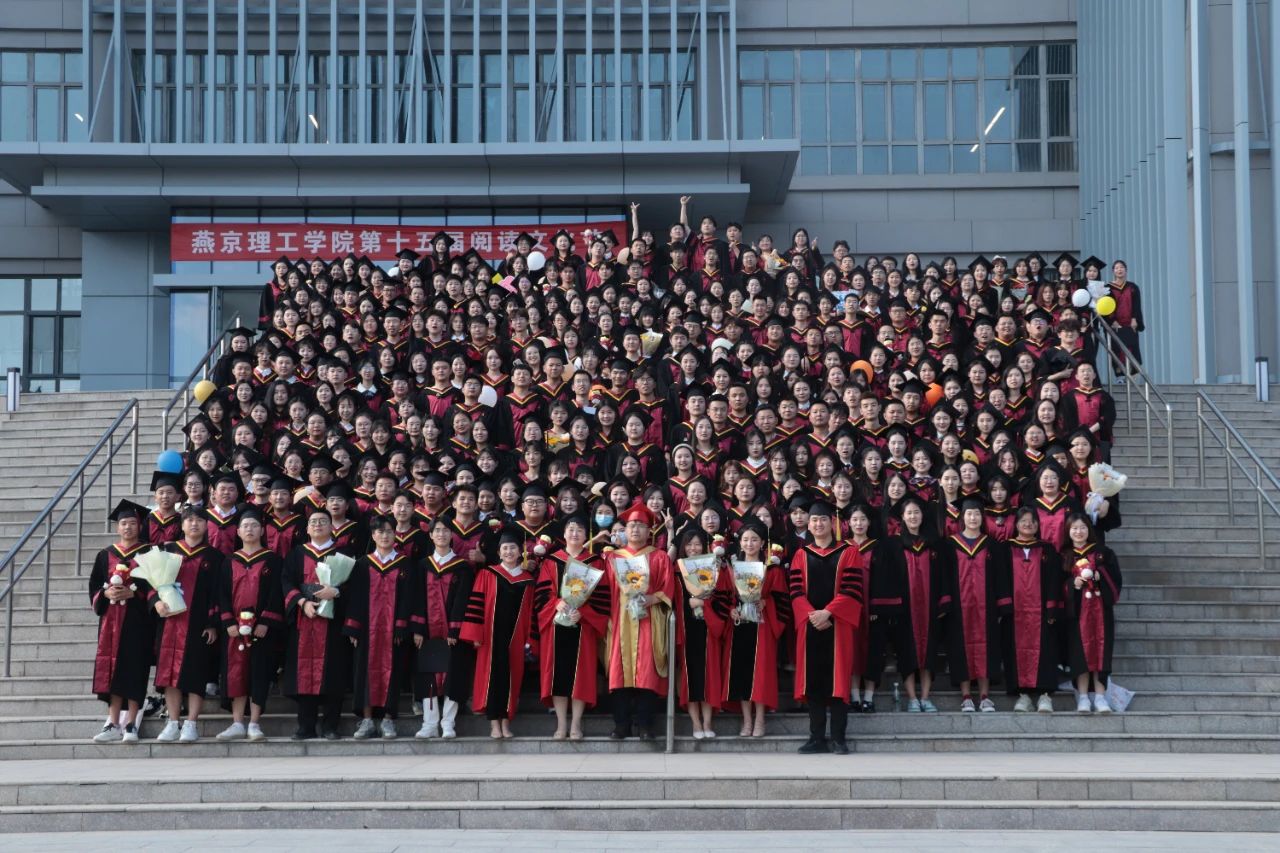 最后,所有毕业生及学校领导在燕京理工学院图书馆门口合影留念,燕京理工学院国际商学院2023届毕业生典礼至此落下帷幕。