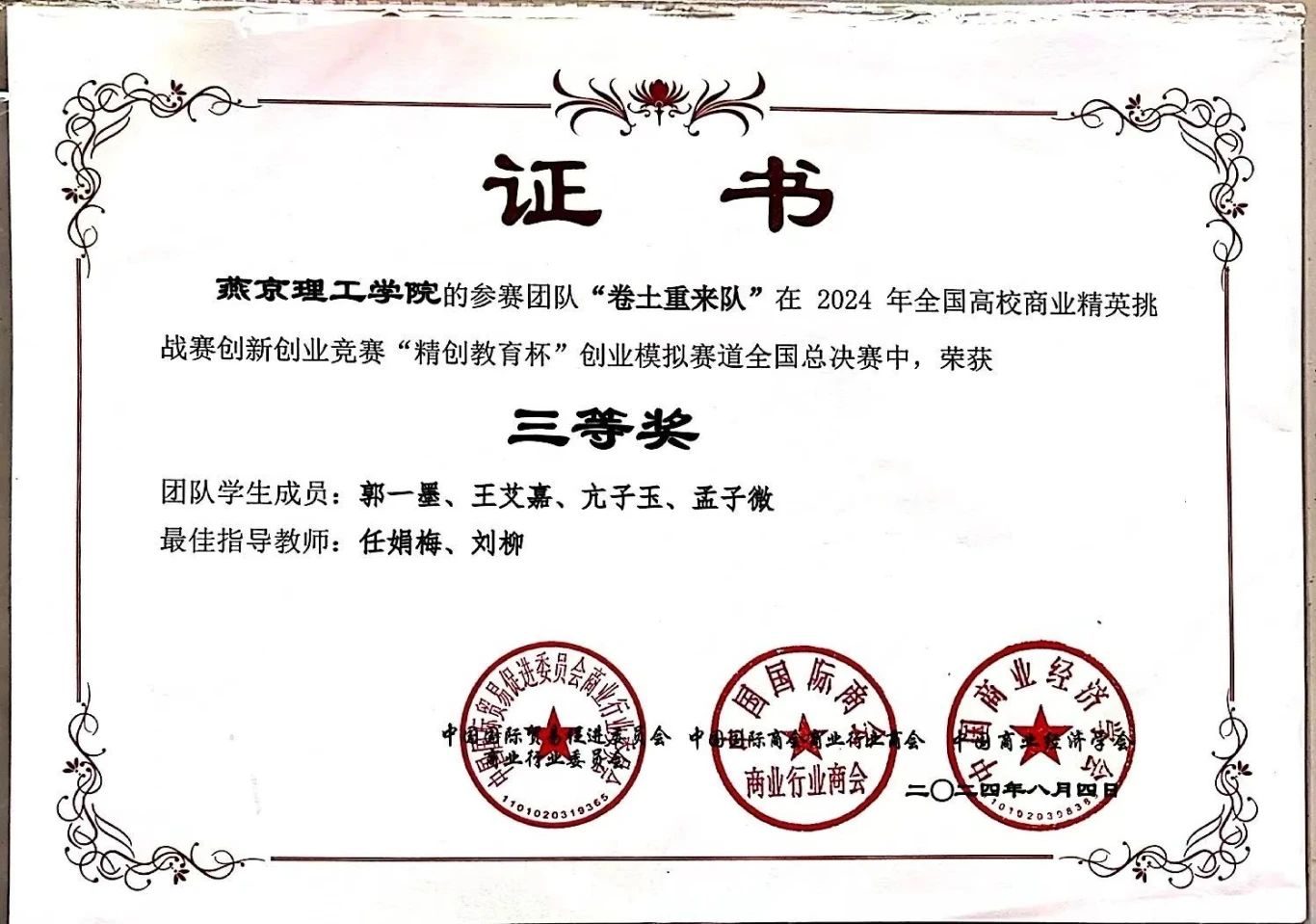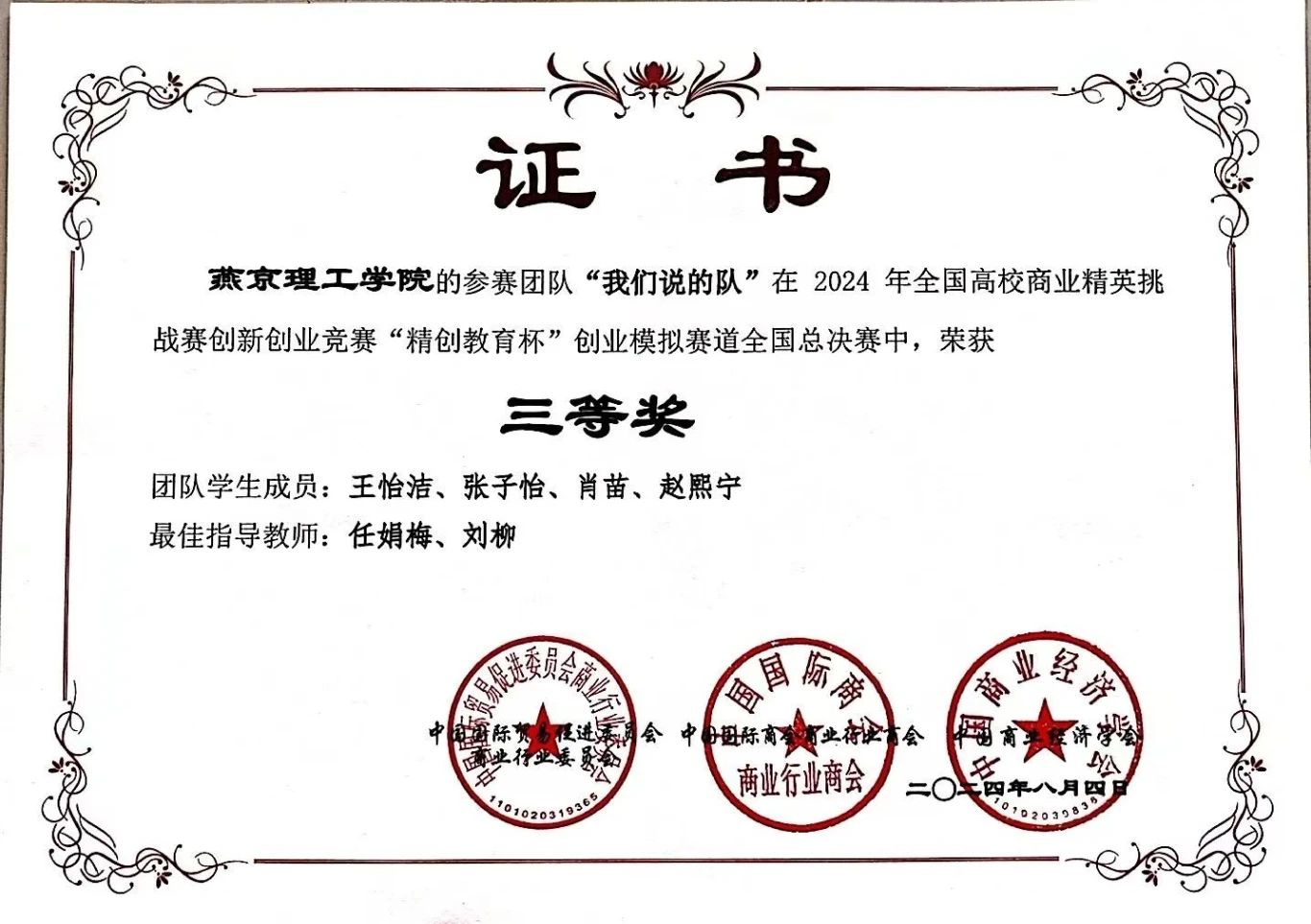 【转载•燕京理工人力专业】喜报|燕理国商人力专业学子在全国高校商业精英挑战赛创新创业竞赛中获国家级荣誉2项!