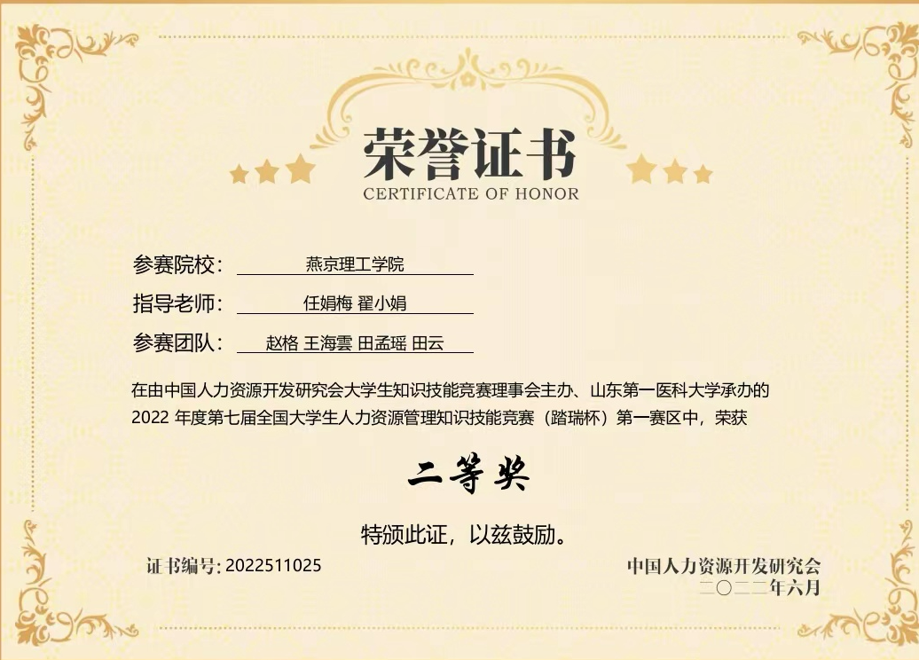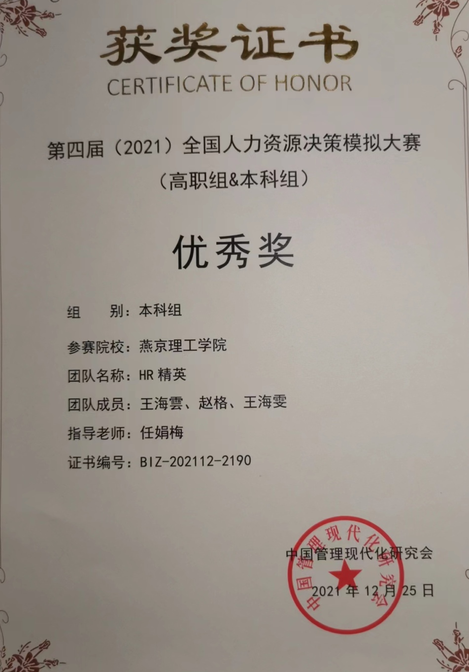先壮志再凌云。刚入学时的王海雲同学就给自己立下了,进入曼切斯特大学商学院、雅思达到7分的目标。于是她向目标进发,刻苦认真,奋斗在多少个日日夜夜,努力在千百刻分分秒秒,让自己梦想的种子结出了果实。王海雲同学曾获得校级一,二,三等奖学金,并且荣获第五届全国人力资源管理决策模拟大赛全国二等奖,第七届全国“踏瑞杯”人力资源管理知识技能大赛全国区域赛二等奖,全国商业创新创业“精创杯” 全国区域赛三等奖;河北省“外研社”词达人校级二等奖。同时,她曾进入联想、百度等大厂实习,不断提升专业能力,积累实践经验。