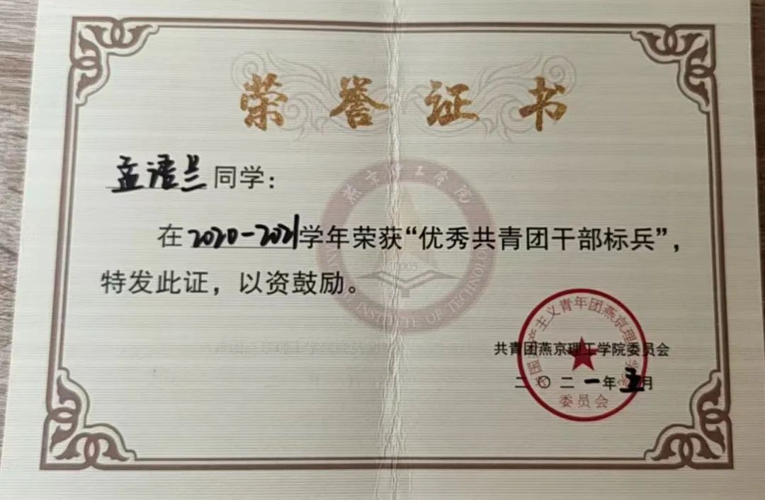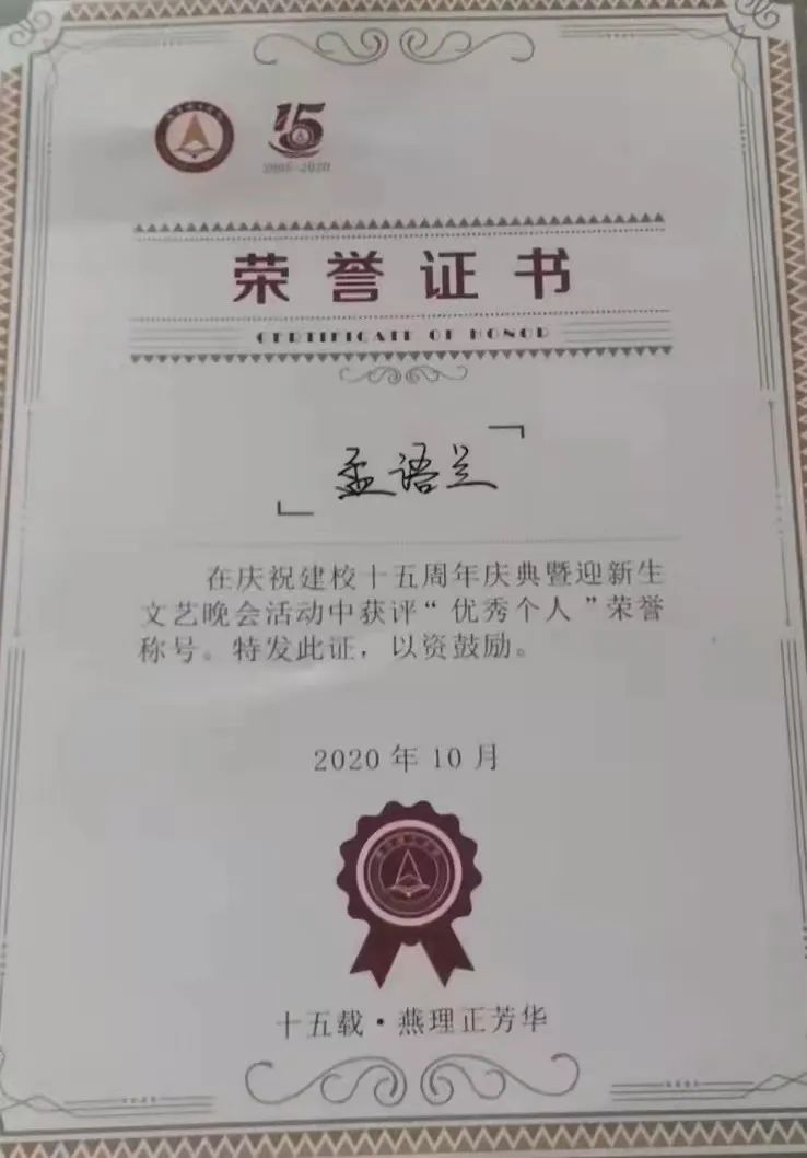 本期榜样在身边(考研特辑)的主人公是财管1906的孟语兰,她是优秀的考研上岸者,上岸河北大学法学类人口学专业。在校期间,曾获得校级“优秀三好学生”“优秀共青团员”“优秀共青团干部标兵”的荣誉称号。同时,她积极考取证书,已经通过了大学英语四级考试,获得国家承认的初级会计职称技能证书和普通话一乙的证书。同时参加国际商学院“歌颂祖国”朗诵比赛,参与学校15周年校庆活动,并获得优秀个人奖项。