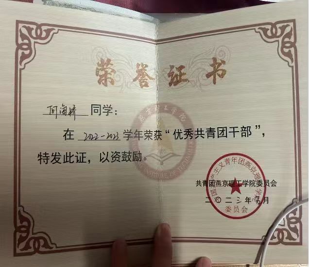 财管2103班何海娇,共青团员,曾任国际商学院朋辈心理互助协会会长。自担任会长以来,她认真对待每一项工作,以热情积极的态度对待部门工作的规划与分配、团队建设与管理、组织例会的召开以及心理健康宣传等。在过去的工作中,她曾组织部门顺利开展心理健康演讲比赛,并获得心理话剧二等奖。在何海娇同学的优秀带领下,朋辈心理互助会的各类活动都开展得井然有序,组织发展也愈发欣欣向荣。何海娇认真严谨的工作态度和身体力行的工作信念令她在组织中大放异彩,不仅为同学们树立了良好的榜样,同时也激励同学们更好地开展心理互助活动,为组织增光添彩。