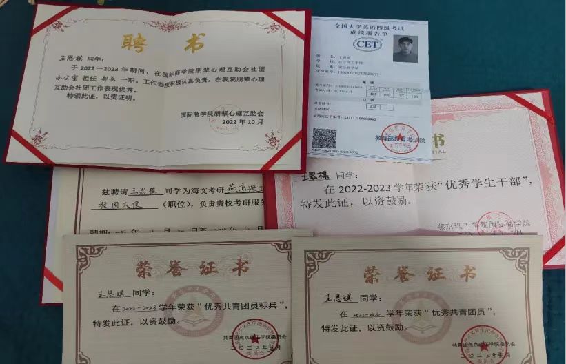 金科2101班王思棋,曾任朋辈心理互助协会会长,在校期间曾获“优秀学生干部”、“共青团员标兵”等荣誉称号。王思棋以热情饱满的精神面貌迎接着工作中的困难与挑战,以踏实严谨的工作态度对待各项部门工作。担任会长以来,他积极组织协会成员举行丰富多彩的校园心理健康活动及朋辈心理辅导,不断向广大同学宣传、普及心理健康知识。与此同时,王思棋同学也积极带领朋辈心理互助协会顺利完成心理健康话剧演出并取得优秀奖的好成绩。他在行动中绘就校园风采,实现自我成长,展现出了国际商学院学子古道热肠、脚踏实地的精神面貌。
