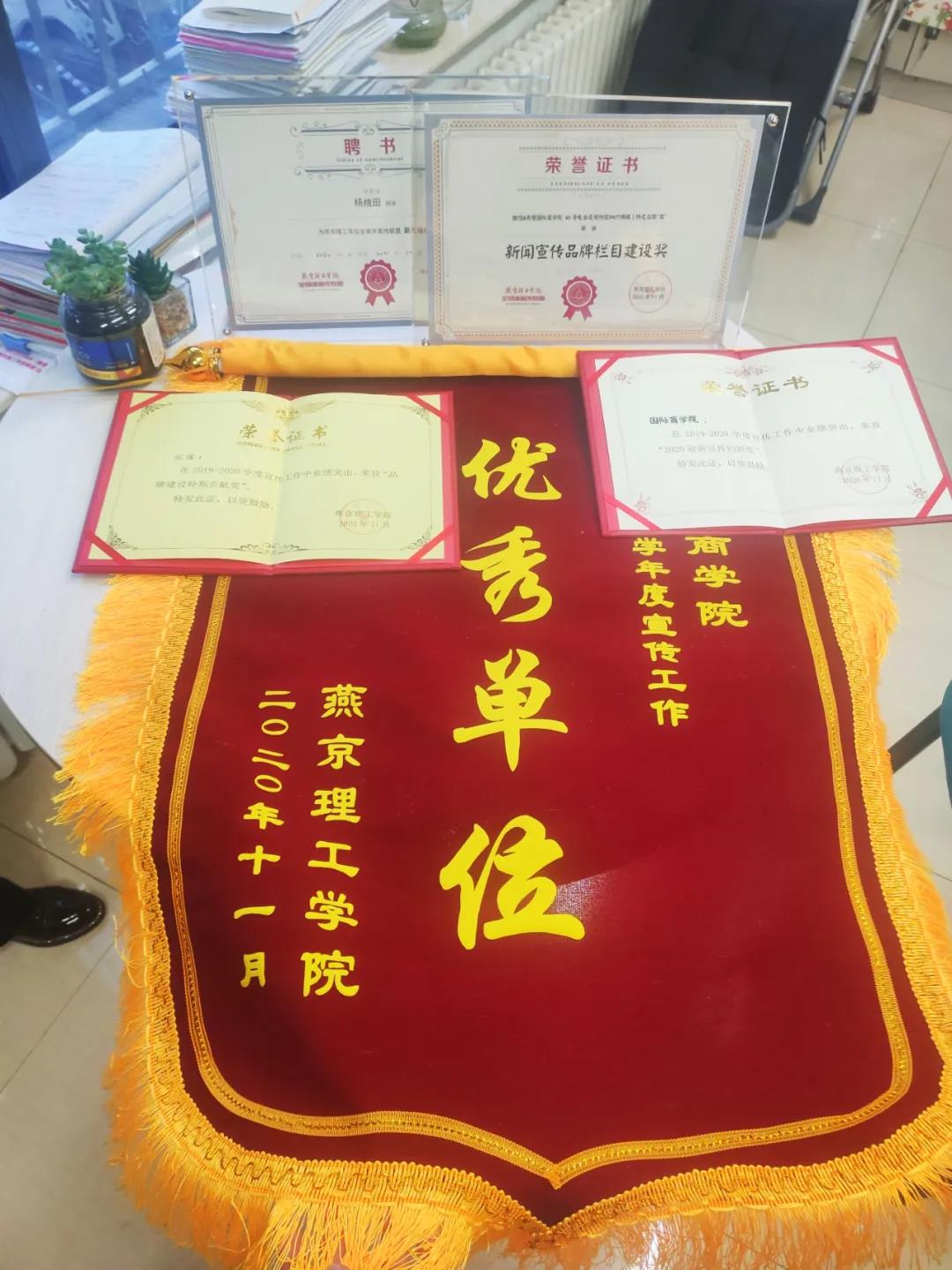 2020年11月,燕京理工学院宣传表彰大会在报告厅举行,国际商学院荣获燕理优秀单位,迎新宣传工作获评迎新创新单项奖,45号电台防疫在路“商”栏目获评燕理品牌栏目,学院通讯员获评燕理品牌建设特别贡献奖。