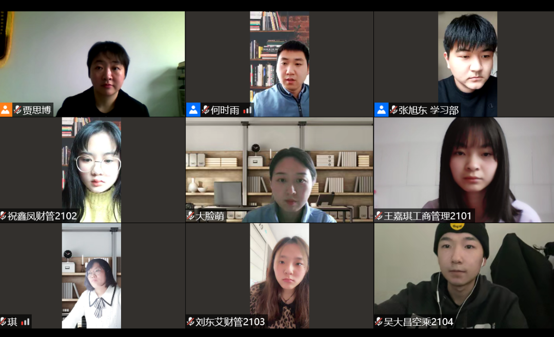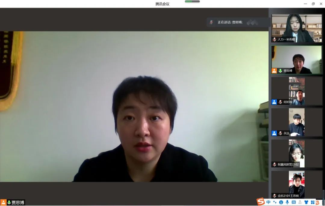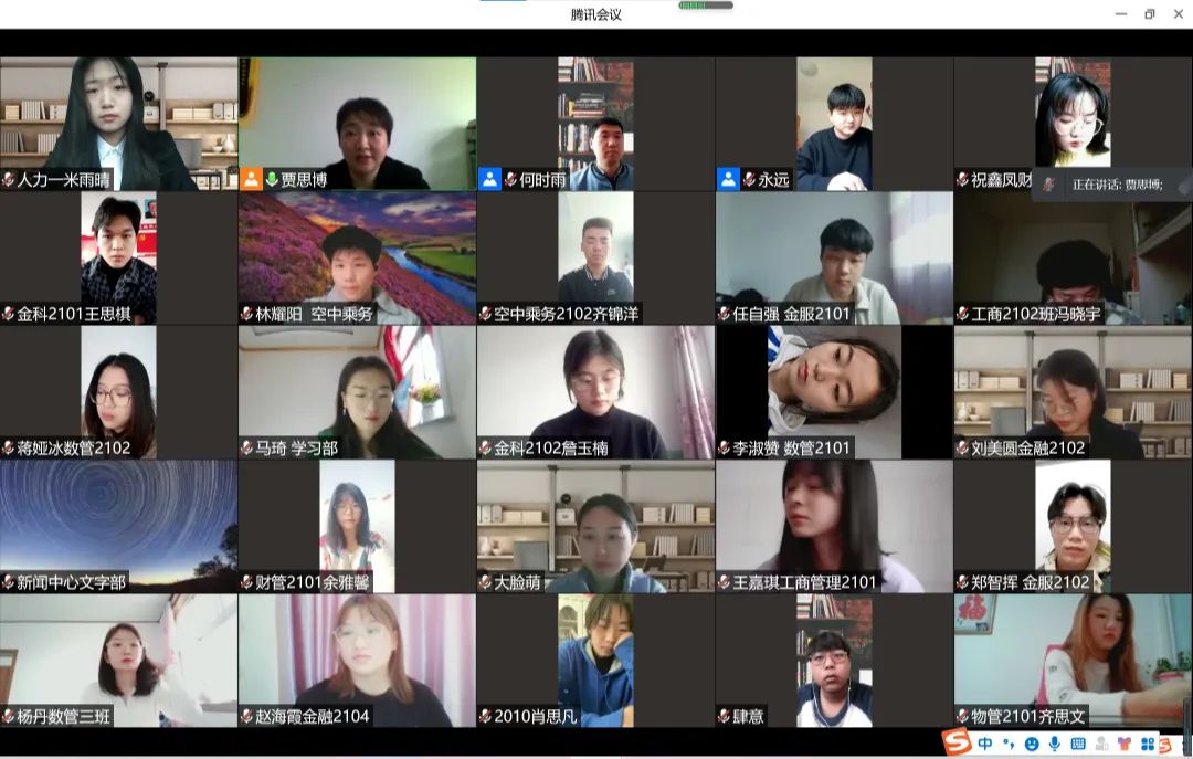会议伊始,何时雨老师解释受疫情影响选择召开线上会议的原因。贾思博书记展开说明本次座谈会召开的目的,“希望通过同学们最真实的声音,反映线上教学中存在的问题,更全面的了解线上教学情况。”同时贾思博书记鼓励学生代表畅所欲言,并表示学院会汇总大家的意见,帮助大家去解决问题。