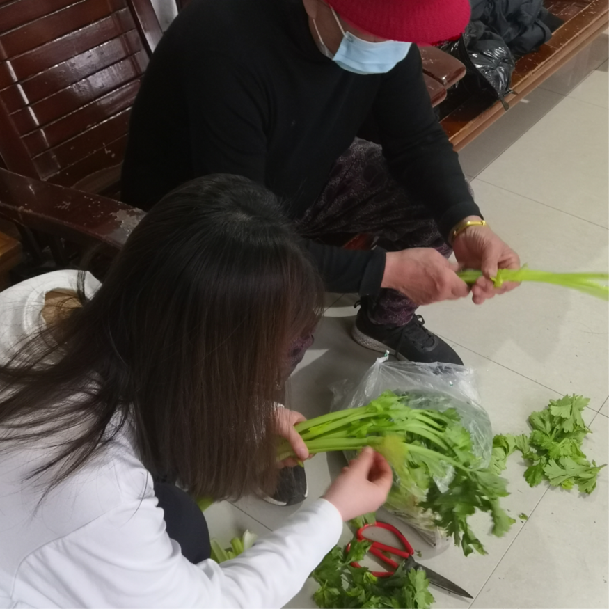 (陈盈含同学在为老人择菜)