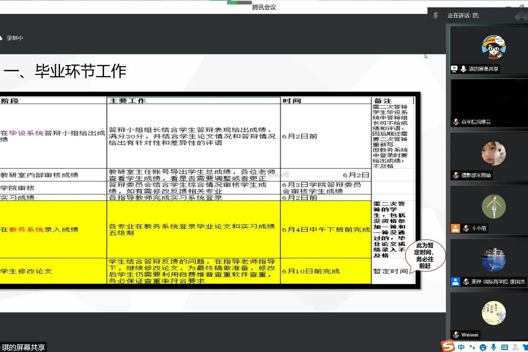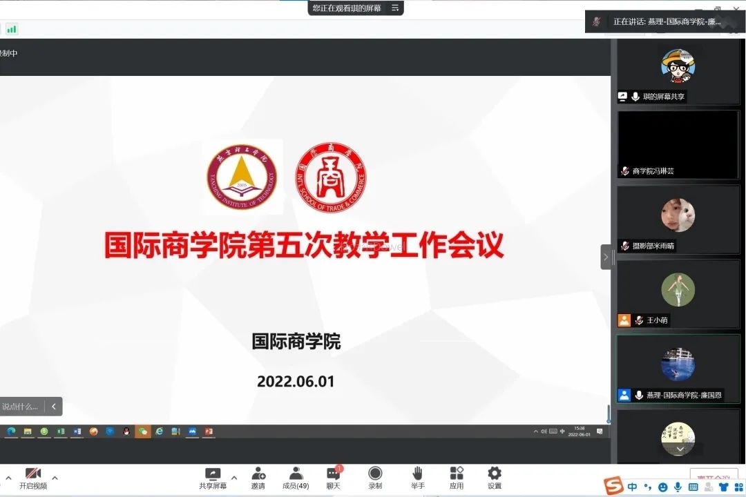 为了保障国际商学院2022届毕业生毕业论文工作和学生期末考核工作的顺利开展。6月1日,国际商学院以线上形式召开第五次教学工作会议,会议由国际商学院院长廉国恩主持,2022届全体论文指导教师和本学期全体任课教师参加会议。
