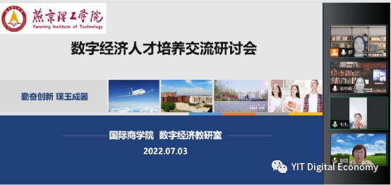 7月3日,由广东工业大学和全国数字经济教育发展联盟主办,为期1天的2022年中国数字经济人才培养交流研讨会暨2022全国数字经济教育发展联盟交流会如期在线上举办。来自联盟多所高校的70余名教师参加了此次研讨会。作为新一届的联盟成员之一,燕京理工学院受邀参加此次线上交流学习会。