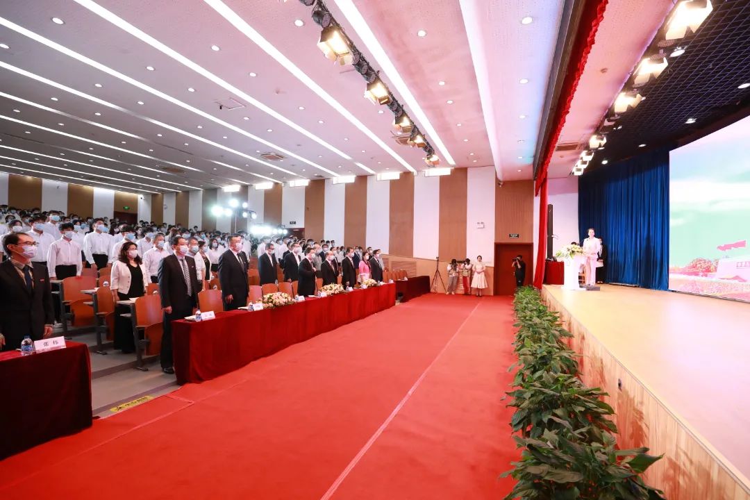 根据防疫要求,开学典礼在学校报告厅设置了主会场,在教学楼另设分会场85处,同时在学校官方视频号进行了全程直播,社会各界人士和新生家长朋友通过线上观看了开学典礼。典礼由学校党委常务副书记、副校长刘元园主持。