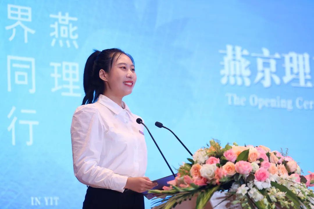 传媒学院播音与主持专业全媒体出镜记者方向的郭姝萱作为新生代表发言。她代表新生向高中老师、父母亲朋和未来四年教育与陪伴成长的师长表达了感谢,分享了入学报到的感动故事,并倡议大家以自信从容、永不言弃、不畏艰辛的心态和行动,去迎接远航路上的无限可能,争做“四会五有”的新新燕理人,不辜负老师和父母的厚望。