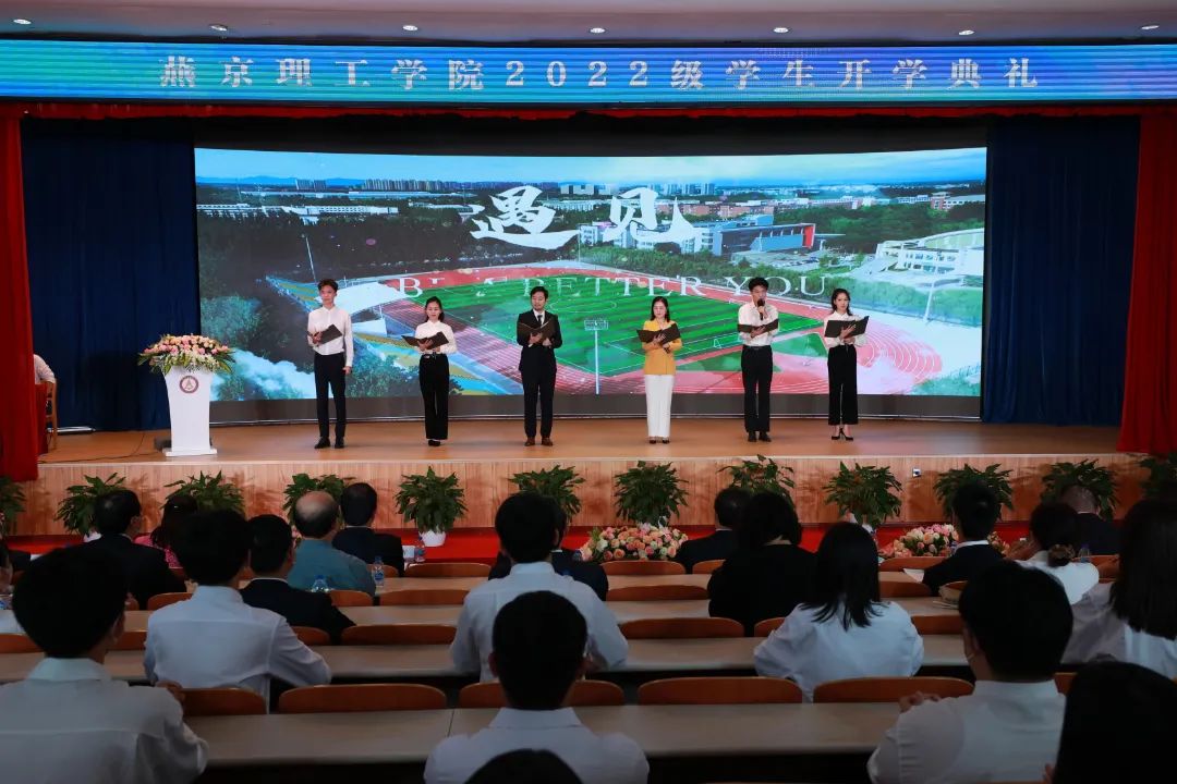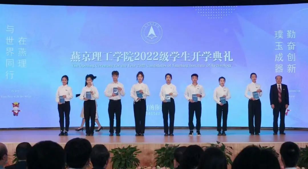 9月24日,燕京理工学院2022级学生开学典礼线上线下举行。校长杨庚宇,党委书记朱代春,党委常务副书记、副校长刘元园,副校长郑迎军,党委副书记、副校长王传超,副校长吴汶燕、宋伟、吴敏,校长办公会成员及各二级学院院长、各处室负责人、优秀校友代表、在校生代表和2022级全体辅导员和新同学参加了典礼。