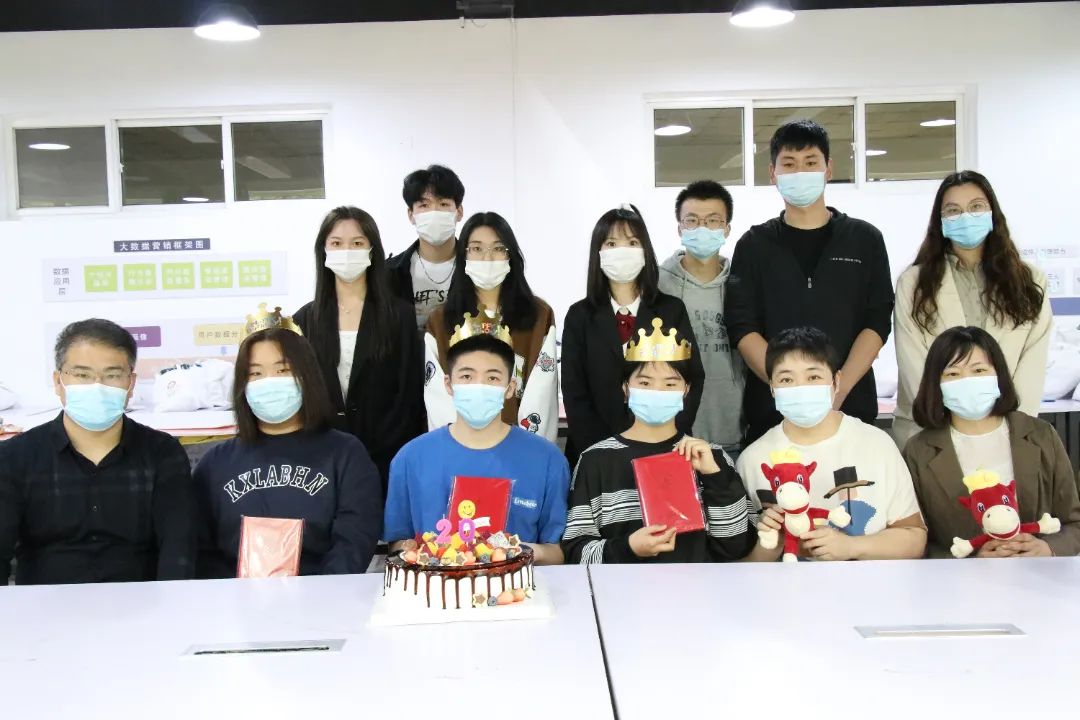 随后,三位小寿星们许愿吹蜡烛,与大家分享生日蛋糕,国际商学院也为他们准备了精美的生日礼物。