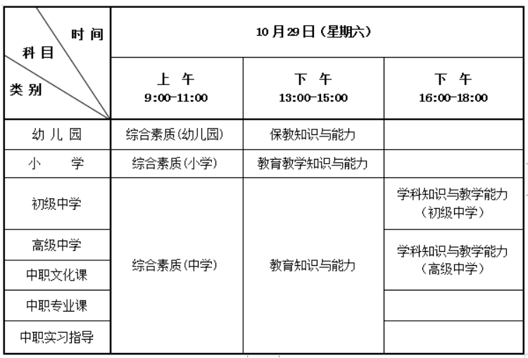 (2022年下半年中小学教师资格考试(笔试)日程安排表)