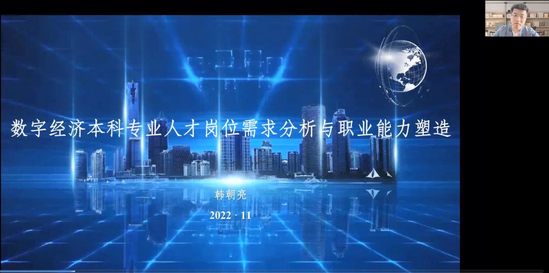 2022年11月23日,数字经济专业邀请具有超过10年数字经济领域理论研究和专业实践的韩朝亮博士开展题为《数字经济本科专业人才岗位需求分析与职业能力塑造》的专业认知讲座。