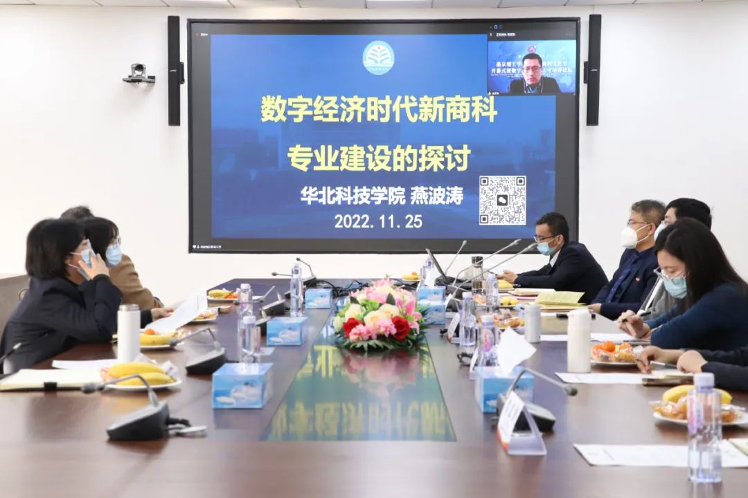 11月25日下午,新商科教学改革与专业建设研讨会在办公楼328会议室线上线下同时举行。广东财经大学教务处副处长肖志国教授针对新商科/新财经人才培养体系探索与实践,创新人才培养模式进行研讨。华北科技学院经济管理学院院长燕波涛教授结合国内外院校办学经验探讨包括新商科培养复合型师资等。北京联合大学商务学院常务副长陈建斌教授介绍了AACSB国际商科认证对新商科建设的经验。防灾科技学院经济管理学院院长袁庆禄教授与金融学专业主任孙岩博士共同针对金融学专业转型的思考与实践进行详细分析,重点分享专业建设的行业特色。