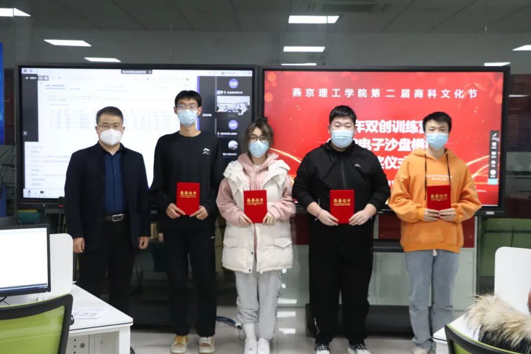 11月26日下午,同学们分为三人或四人一组正式投入实战操作中,在进行了两轮模拟训练赛及一轮正式比赛后,由赵娜、陈思宇老师指导,罗牧西、刘炳辉、靳涛涛、任茹茹四名同学组成的队伍最终获得了一等奖。廉国恩院长、贾思博书记、张琪副院长分别为获奖同学颁奖并合影留念。