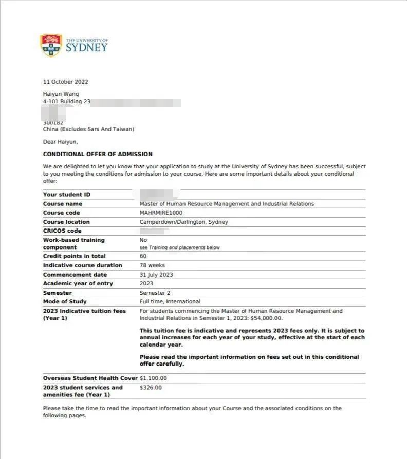 国际商学院2019级人力资源专业王海雲同学获得悉尼大学(2023年QS世界排名第41)人力资源管理专业硕士offer。