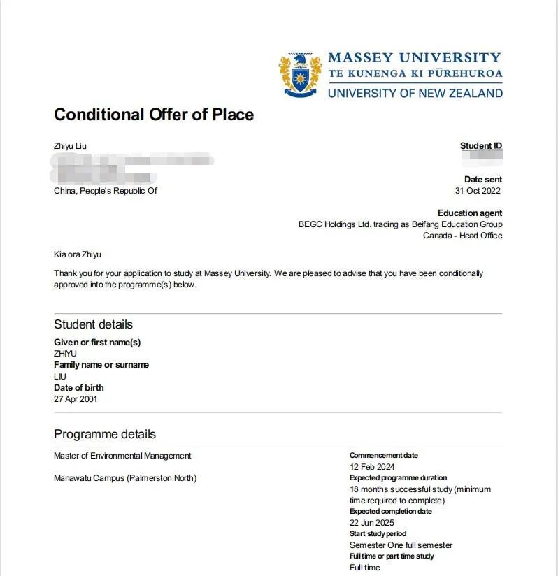 信息科学与技术学院2019级计算机科学专业李博涵同学获得梅西大学(2023年QS世界排名第292)信息科学专业硕士offer。