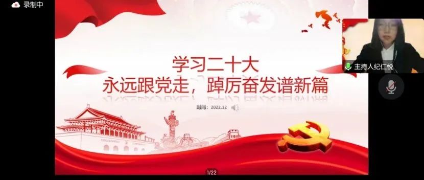 为了深入学习党的二十大精神,提高团学干部的政治素养,坚定理想信念,国际商学院团总支于12月2日开展学习宣传贯彻党的二十大精神专题培训会,本次培训会由国际商学院纪仁悦主持,国际商学院团总支全体成员参加本次培训会。