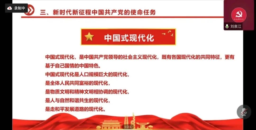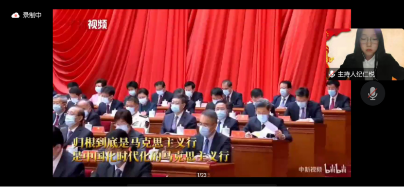 首先,第十四届国际商学院团总支第一副书记刘泉江作为学生党员向我们分享了他对二十大精神的理解。他的心得分享让我们更加深刻的了解了党的二十大精神,刘泉江同学还提出了我们作为一名新时代大学生应担当的责任,我们应高举中国特色社会主义伟大旗帜,全面贯彻习近平新时代中国特色社会主义思想,弘扬伟大建党精神,为全面建设社会主义现代化国家、全面推进中华民族伟大复兴而团结奋斗。