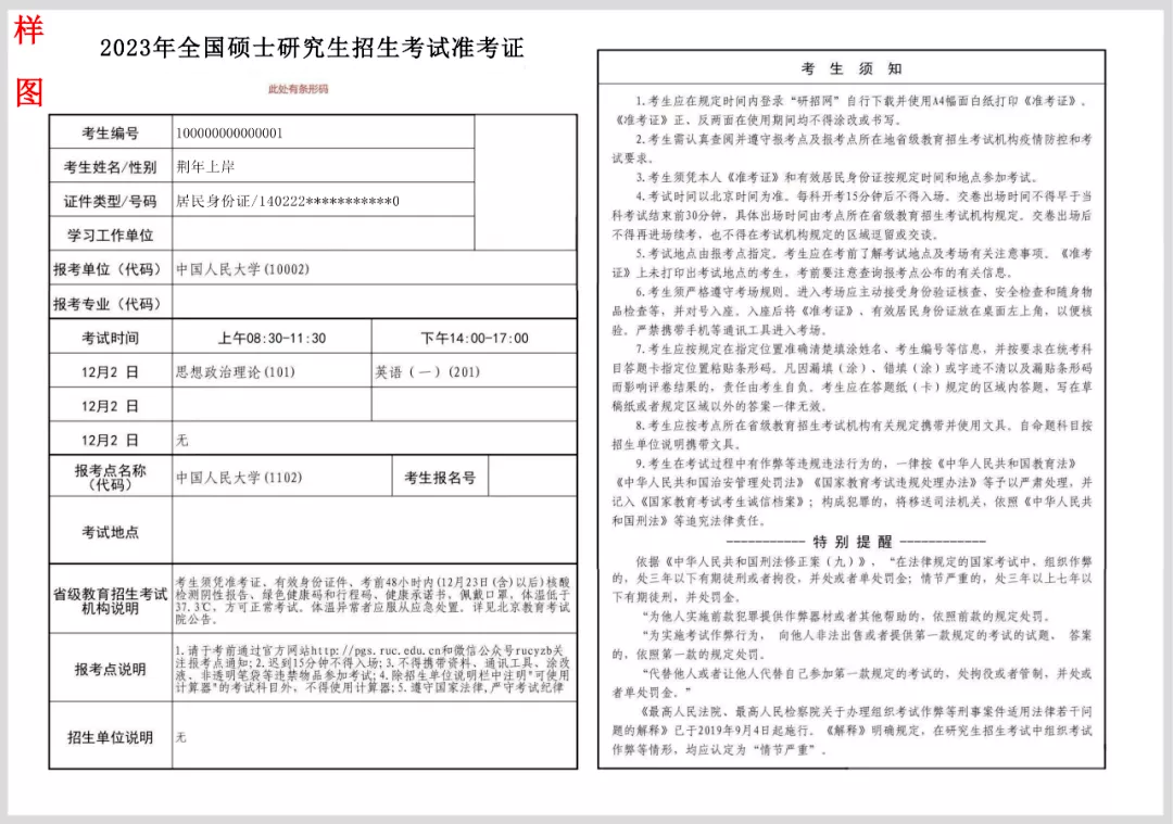(电子版准考证样图)
