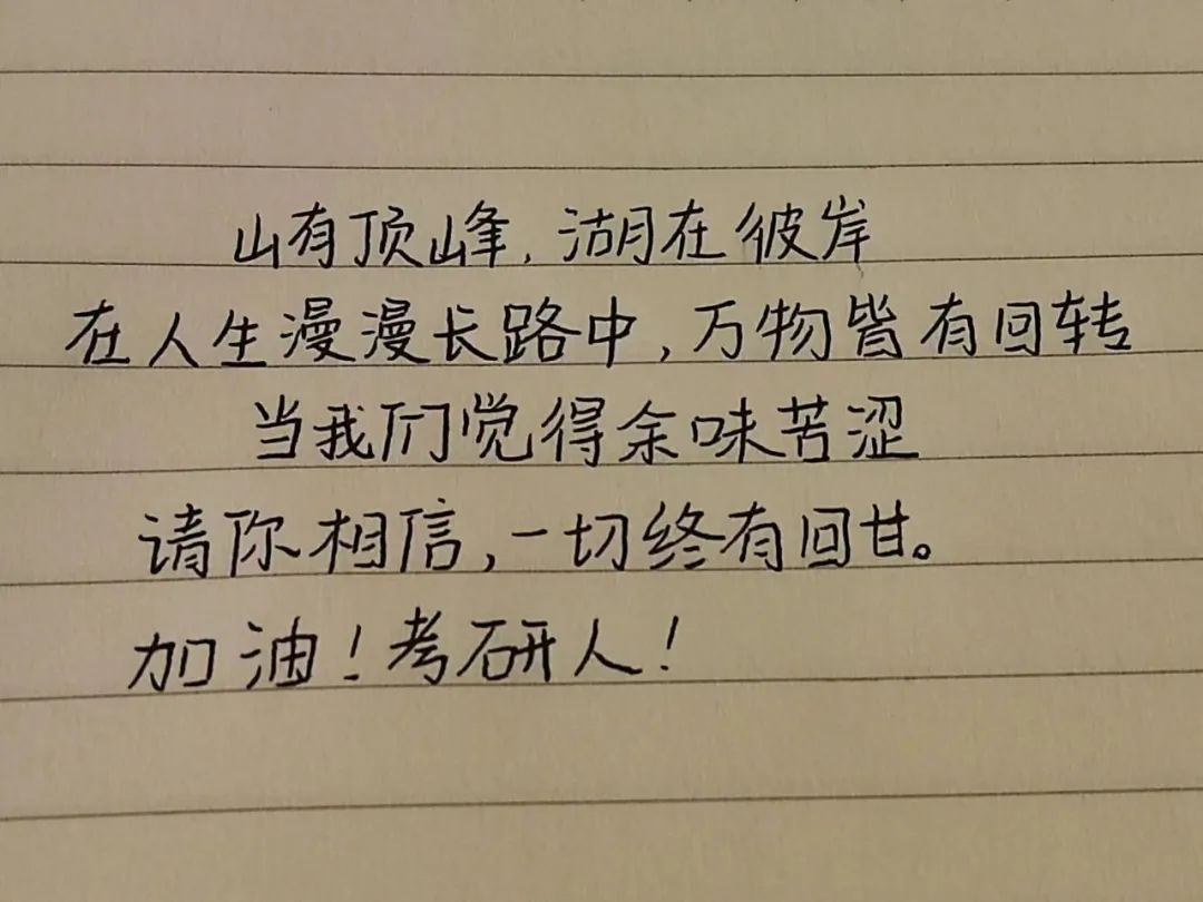 山有顶峰,湖在彼岸。在人生漫漫长路中,万物皆有回转,当我们觉得余味苦涩,请你相信,一切终有回甘。加油!考研人!