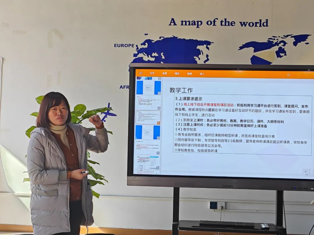 张琪副院长围绕教学工作、毕业环节、期末考核材料归档、教学质量年工作安排四个方面进行介绍。张琪院长强调了毕业工作的重要性,梳理细化了毕业论文、实习等各环节的时间节点与条件,对论文指导教师提出了更高的要求,为2023届毕业生保驾护航。并希望各位老师能够继续努力,不断思考和探索数字化时代下,教育教学改革的新模式,提高教学质量。