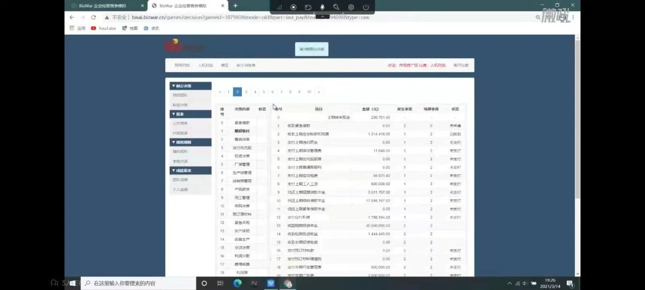 有志者,事竟成;破釜沉舟,百二秦关终属楚;苦心人,天不负;卧薪尝胆,三千越甲可吞吴。竞赛中常常遇到困难,比如在初赛过程中,对于技巧和打法方案不熟悉,不能够准确把握市场,因此在生产和销售中产生巨大问题,在后期的决赛中,因疫情原因只能线上交流,不能面对面沟通,预计市场情况可能与实际差很多等问题。但是困难不可怕,虚心才是必杀技。段晨辰遇到困难向老师请教问题,找到有经验的、参加过比赛的人去学习,然后一起寻找解决办法。姚淼鑫坚持不懈,把自己能够做到的最好方案发挥出来。尽可能在线上通过电话多交流,进行方案的思维碰撞。曹艳琪稳住心态,针对比赛规则变化作出相应调整,三个人共同解决办法。