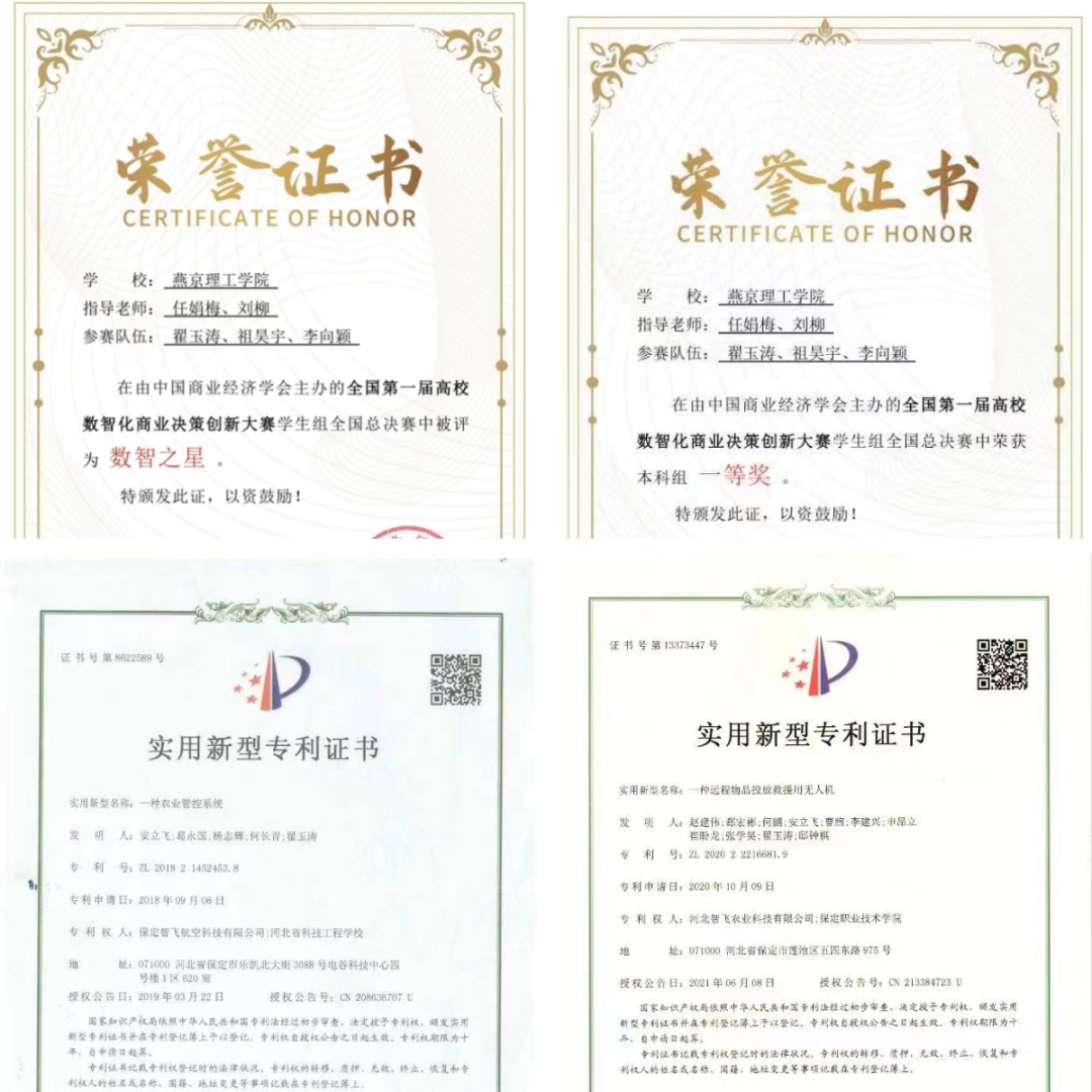 “博观而取之,厚积而薄发”,成功向来不是一蹴而就的。作为班级负责人兼团支书,翟玉涛的组织沟通能力很强,又曾多次参加省赛国赛,经验颇多。李向颖曾担任过班长团支书等职位,祖昊宇多次参加过本专业的各项竞赛,每一位成员都有或多或少的经验积累。翟玉涛补充,他利用在假期实习的无人机企业——河北智飞农业科技有限公司,来提供数据层面和技术层面的知识;同时也利用自己曾技术指导过的鑫凯农机服务专业合作社来提供实践支持。