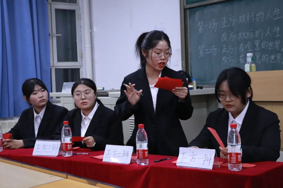双方经过几轮交锋,锐气不减,沉着冷静的回答对方的问题,以清晰的逻辑和清楚的语言展示己方的观点和想法。最终,正方以78.6分赢得本场比赛的胜利,正方一辩马思伊、三辩李明蕊和反方四辩赵妍婷获得最佳辩手的称号。