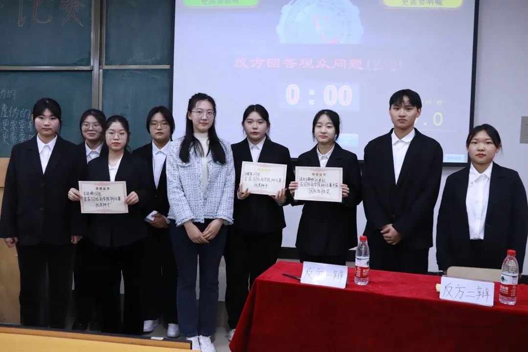 “一时强弱在于力,万古胜负在于理”,双方辩手们思路清晰,有着明确的立场和坚定的态度,以极强的思辩能力和临场反应能力带来的一场精彩的辩论赛。最终,反方以76.6分赢得本场辩论赛的胜利,正方一辩梁倚瑞和反方三辩王栋萍获得最佳辩手的称号。