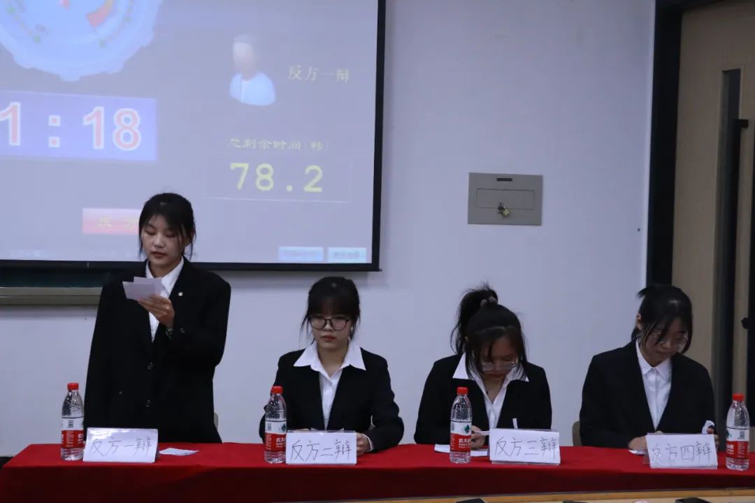 双方辩手们的精彩对峙,让现场的观众和评委不禁响起了热烈的掌声,最终,反方以76.83分赢得本场比赛的胜利,同时,正方二辩李铨璐和反方一辩王耀萱荣获最佳辩手的称号。