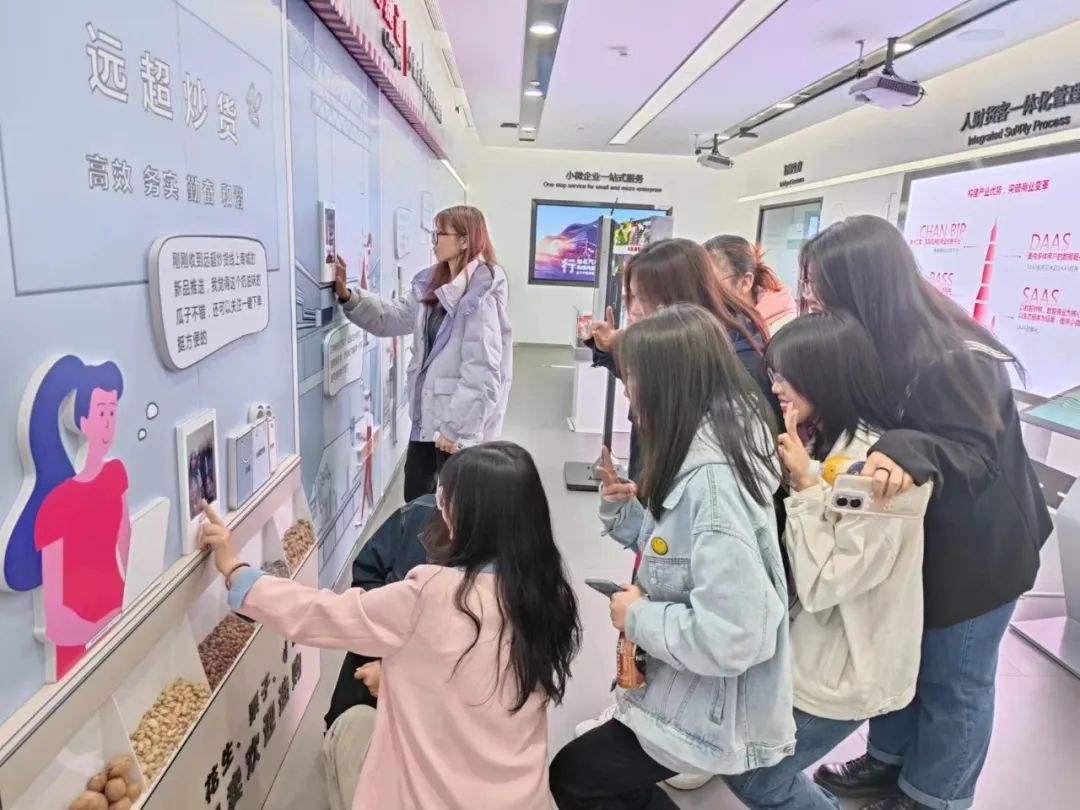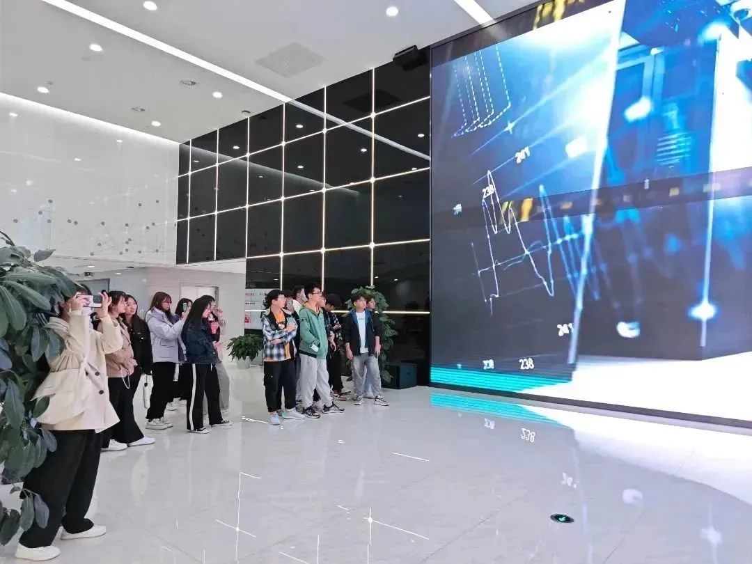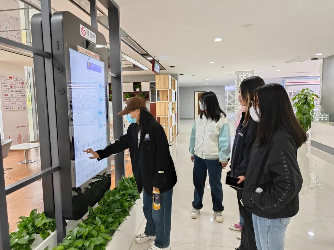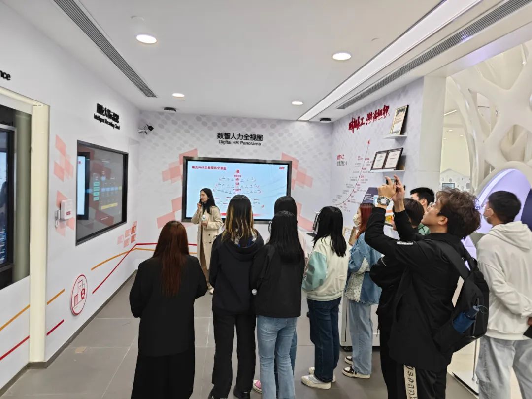首先,同学们通过大屏视频讲解对用友集团的产业发展进行了初步的了解。新道科技股份有限公司河北分公司杨艺老师向同学们介绍了用友产业园区的相关背景以及创立历程,并带领同学们参观了员工生活区以及办公区域。随后,河北新道分公司讲师张媛雅在数智企业体验馆带领全体师生参观了智慧医疗、智慧交通,智能建筑、协同办公、智慧采购等各方面的数字化产业。在讲师与学生的互动中,同学们深刻了解了用友集团发展的进程与趋势。