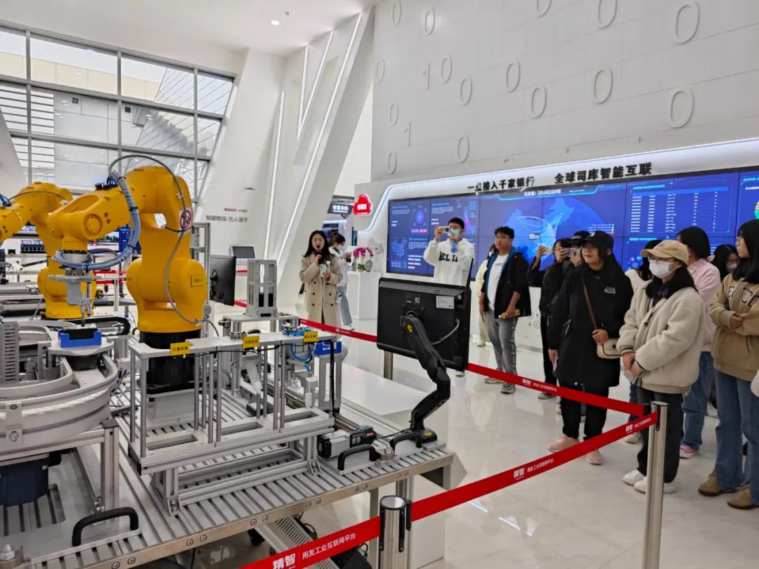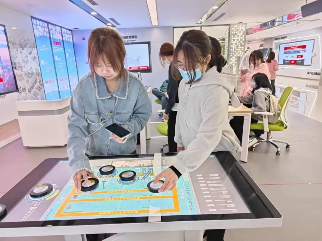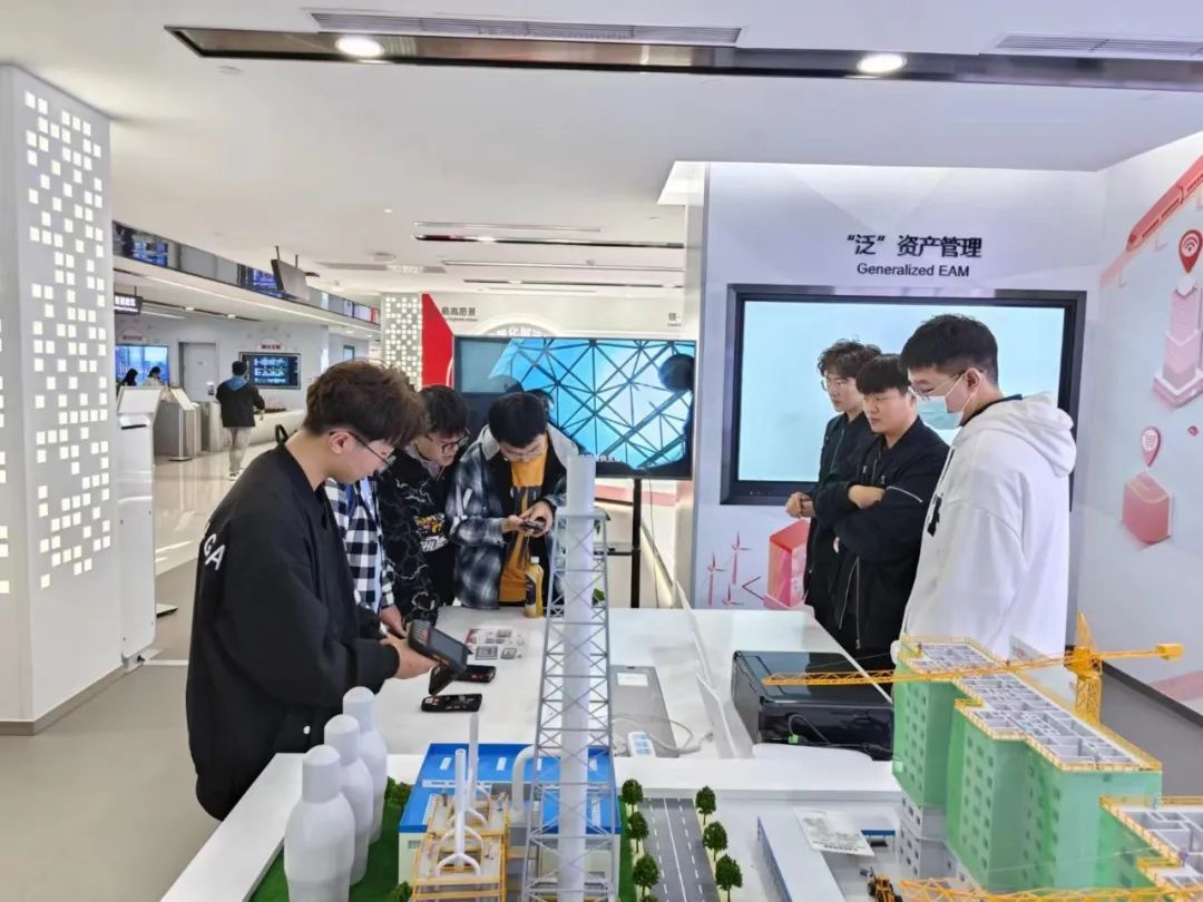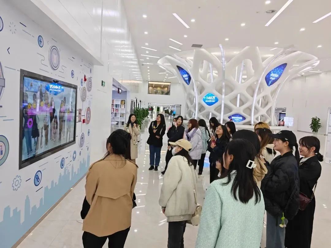 首先,同学们通过大屏视频讲解对用友集团的产业发展进行了初步的了解。新道科技股份有限公司河北分公司杨艺老师向同学们介绍了用友产业园区的相关背景以及创立历程,并带领同学们参观了员工生活区以及办公区域。随后,河北新道分公司讲师张媛雅在数智企业体验馆带领全体师生参观了智慧医疗、智慧交通,智能建筑、协同办公、智慧采购等各方面的数字化产业。在讲师与学生的互动中,同学们深刻了解了用友集团发展的进程与趋势。