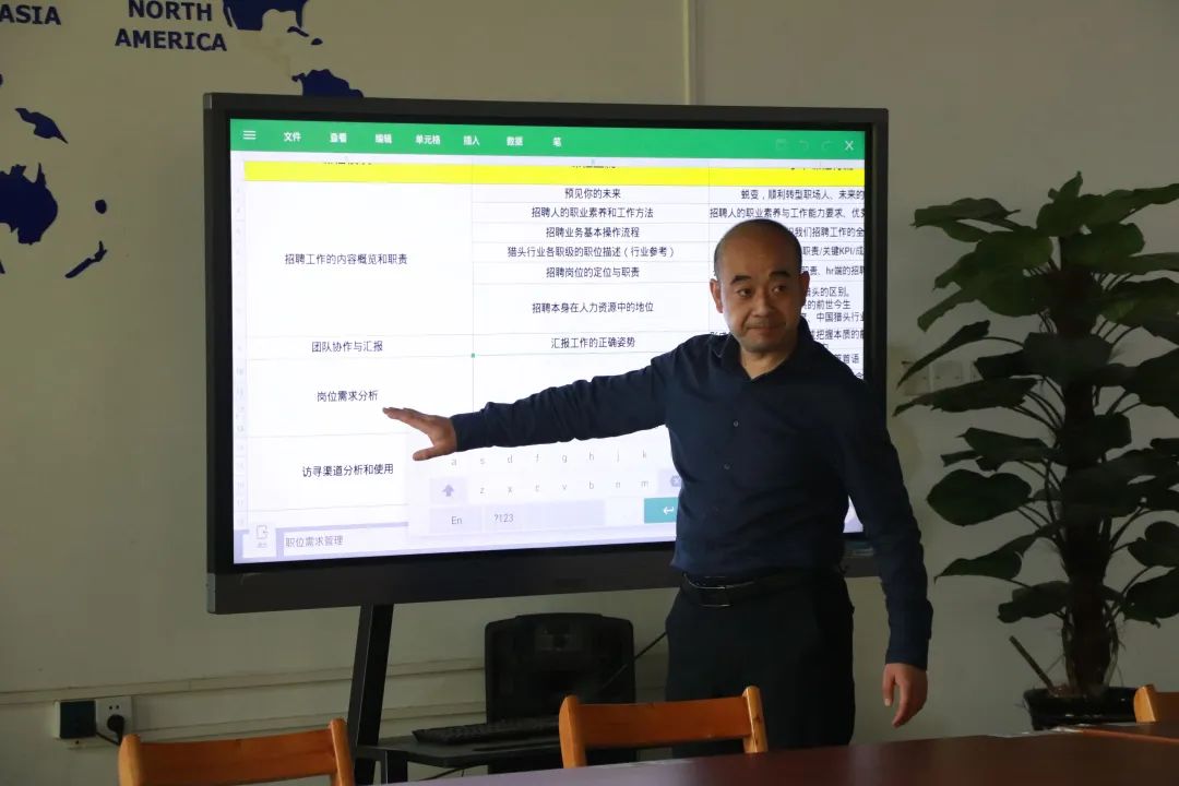 最后,王鹏老师指出本次培训课程旨在缩短学生在社会适应的时间,在就职就业的过程中提升竞争力,锻炼职场素养,从而达到职场标准。随后,王鹏老师从招聘工作内容概览和职责、团队协作与汇报、岗位需求分析、访寻渠道分析和使用四个模块对课程流程进行介绍。