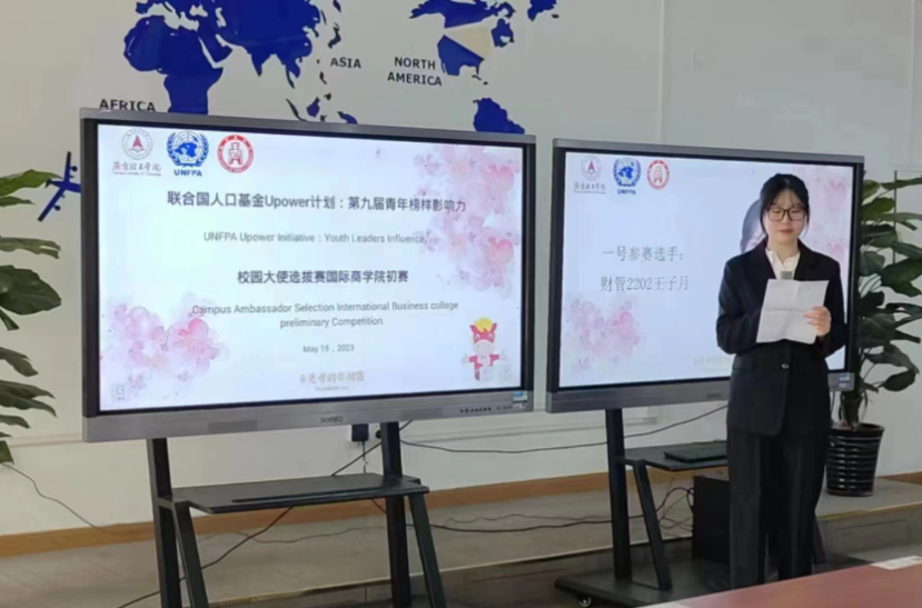 为践行“高端化、国际化、个性化”的办学理念,加强校园文化建设,拓宽青年国际视野,展现新时代青年的世界格局和使命担当,为同学走向世界奠定良好基础,提供展示自我的舞台,5月15日,国际商学院于C103举行“联合国人口基金UPower计划:第九届青年榜样影响力培训校园大使选拔赛初赛活动。