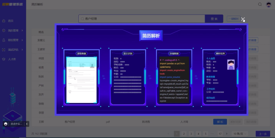 第二部分,蔺老师借助实际案例,带领学生按照招聘流程,真实感受了智能化人力资源管理系统的实操过程,学生在案例中认领角色,带着角色身份,感受了大数据和人工智能在招聘环节中的实际应用。