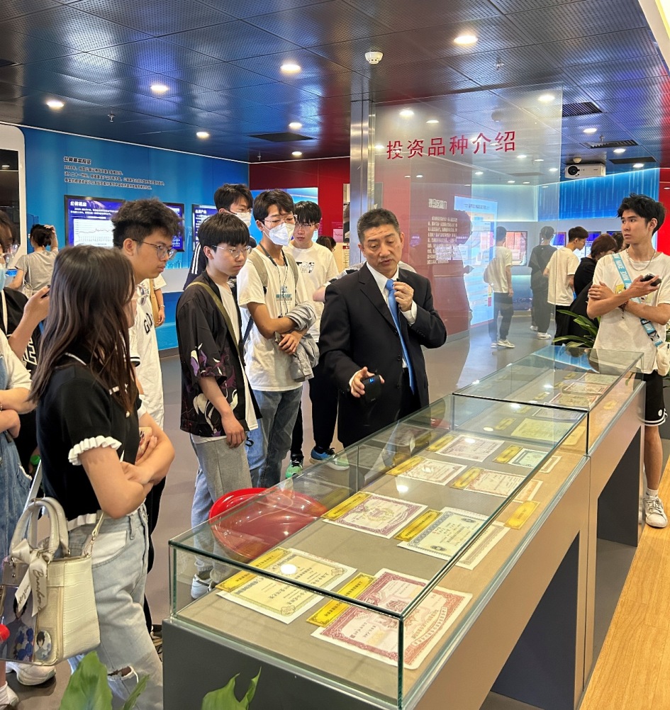首先,他们带领同学们参观并介绍了证券发展史展馆,详细介绍了证券行业的发展历程,同学们对证券发展史充满好奇,从第一张纸质股票到后续的电子股票,同学们多次提问,李主任也为大家一一进行了解答,让同学们受益匪浅。