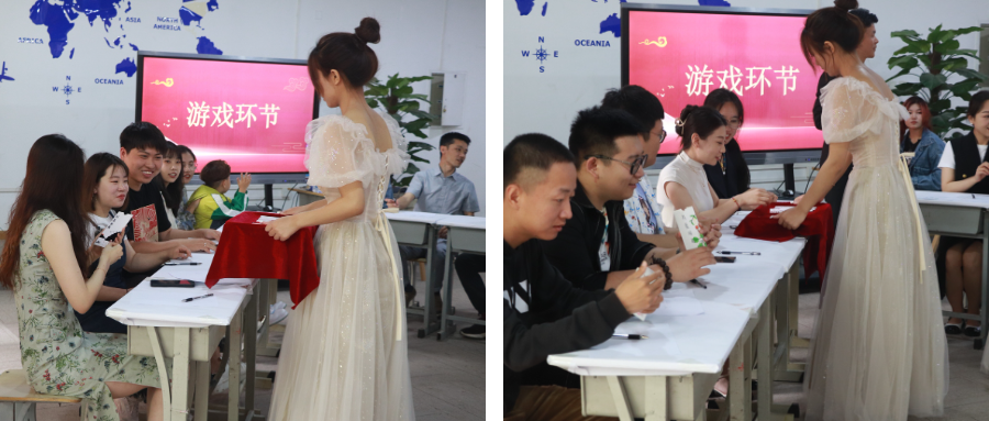 “你画我猜”和“数字炸弹”两个小游戏欢快的进行着,老师和同学们组成一个队伍,齐心协力,共同猜出一个个画风迥异的成语。惊险刺激的数字炸弹在众多师生没有防备的情况下“爆炸”。这一刻,师生们都沉浸在了相聚的喜悦和欢乐的游戏氛围中。