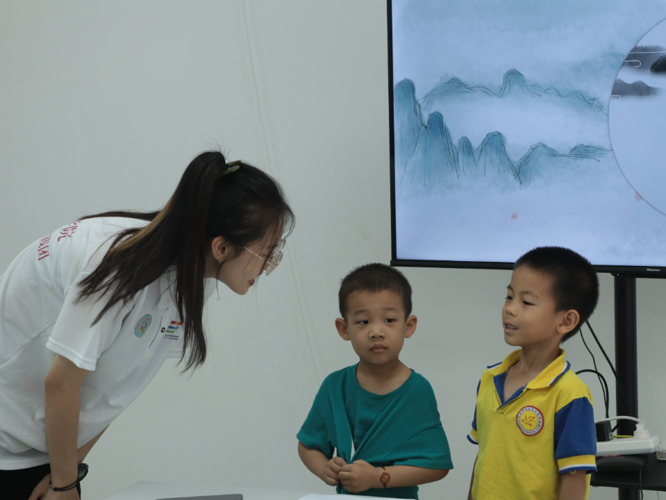 古诗词是中华传统文化的宝贵财富,志愿者带领孩子们朗诵古诗词,讲述诗词中的意义以及所包含的诗人情感,让小朋友们感受诗词的特点及魅力。而在“书法小课堂”中,志愿者细致认真地为小朋友们讲解毛笔的握笔姿势、基本笔画的书写规则等,加强对小朋友们的书写练习,激发小朋友们学习书法的兴趣,让小朋友们感受到书法所带来的魅力。