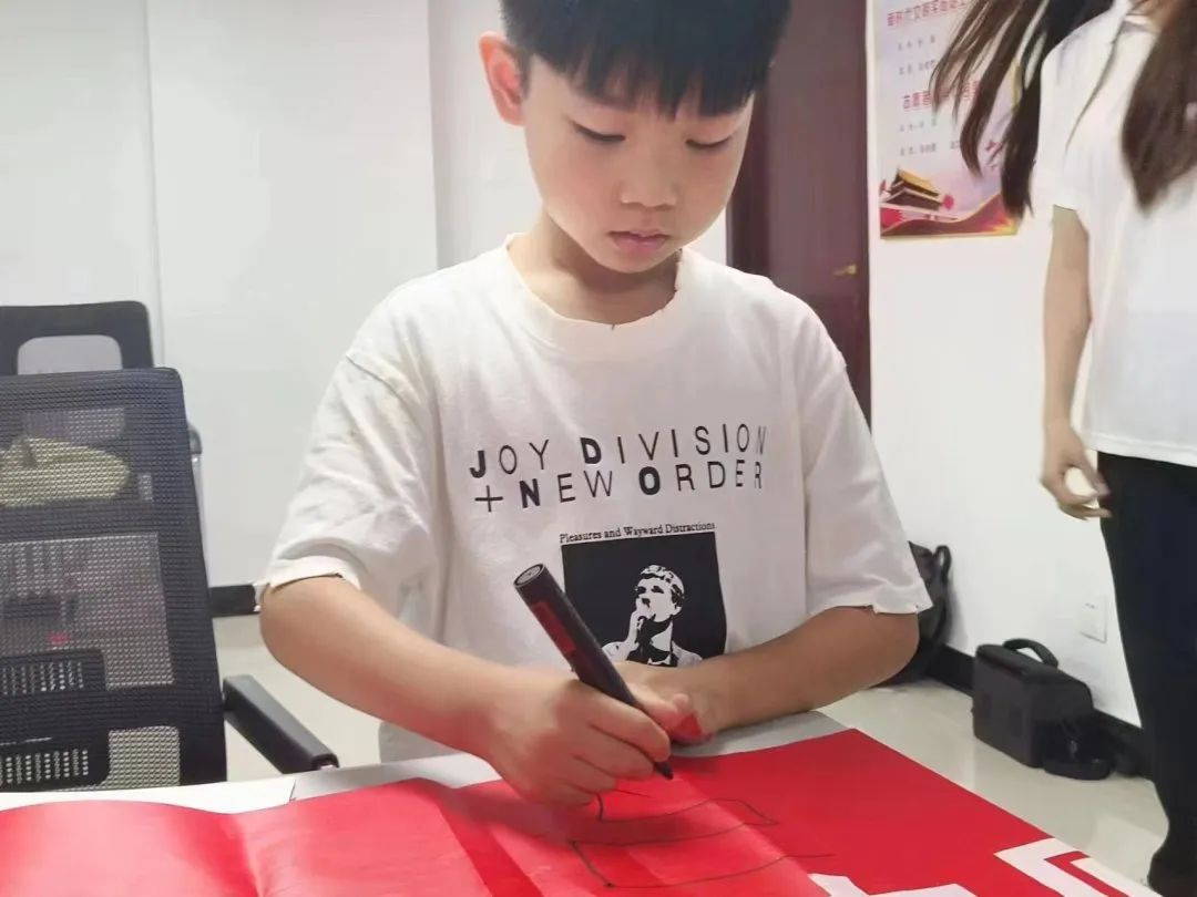 在结业仪式的最后,志愿者和小朋友们依次在旗帜上签下自己的名字并进行合影留念,将这份美好的时光用摄像机记录下来,让照片定格美好的回忆。写满名字的旗帜,凝聚了所有人的快乐,承载了志愿者对小朋友们未来无限可能的美好憧憬,它映照出了小朋友们的欢乐与不舍,也反映出了志愿者们的担当与使命。温暖的气氛在社区中弥漫,令人动容,相信这一幕会给志愿者和小朋友们留下深刻的记忆并珍藏。