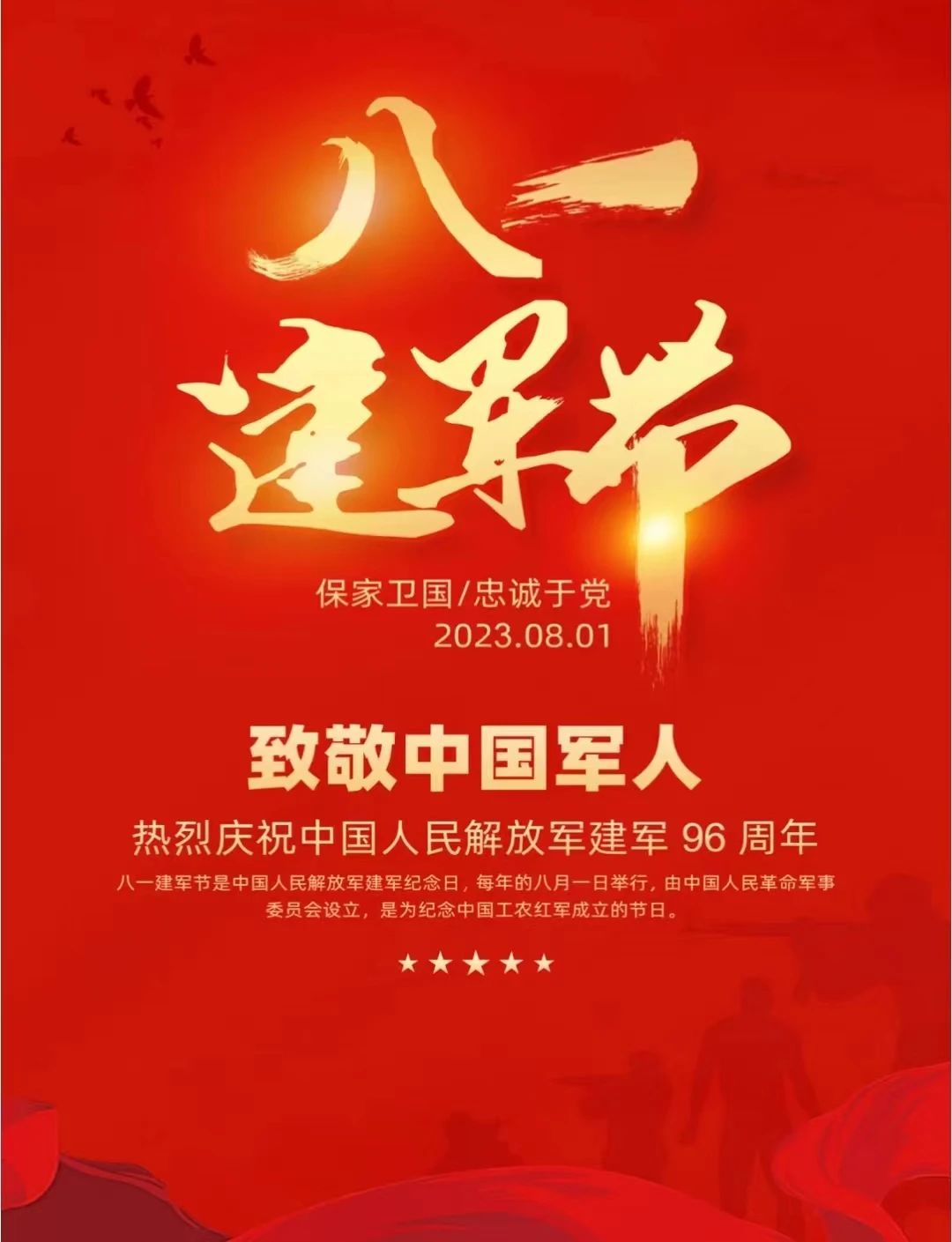 总之,建军节是中国人民对中国人民解放军的崇高敬意和感谢,也是展示中国军队实力和民族自豪感的重要节日。