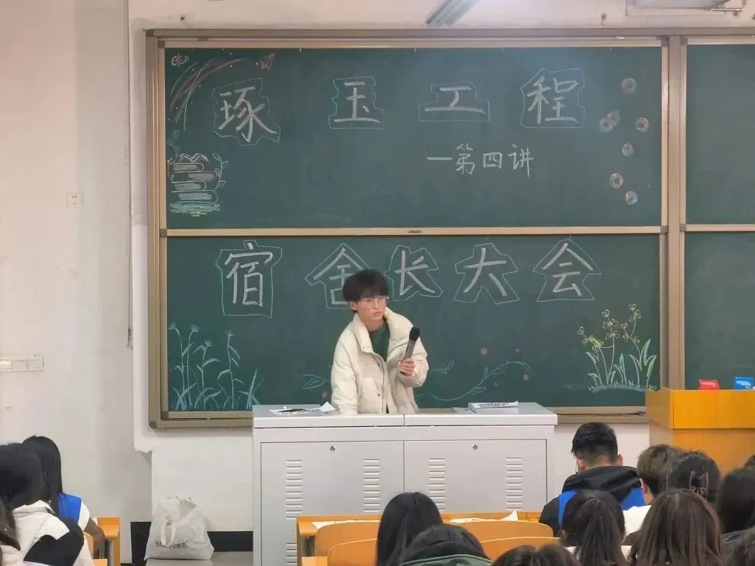 千琢璞为玉,万磨沙作珠。磨砺使人成长,困难使人坚强。在磨砺中,我们学会了坚韧,在磨砺中,我们学会了奋斗,在磨砺中,我们收获了荣耀。学干培训可以帮助我们提高自身素质和能力,增强我们应对挑战和压力的能力,从而更加从容地面对磨砺。2023年11月8日国际商学院宿管会于综合教学楼301举办国际商学院“琢玉工程”学干培训仪式暨第四讲宿舍长培训会。