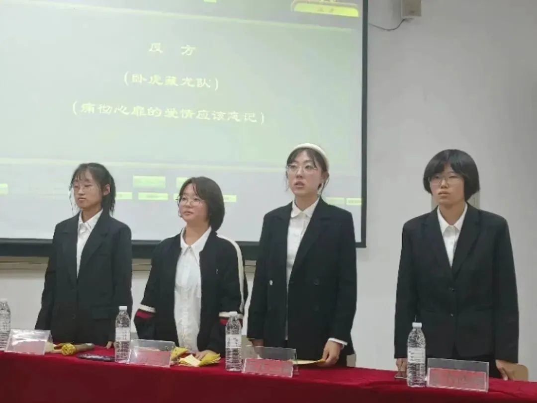 接着双方二三辩分别对对方进行了攻辩,他们引据经典向对方进攻,思维严密,获得了观众热烈的掌声。经过激烈角逐,最终正方获得了胜利。反方二辩张天嘉和反方四辩张琳获得最佳辩手的称号。