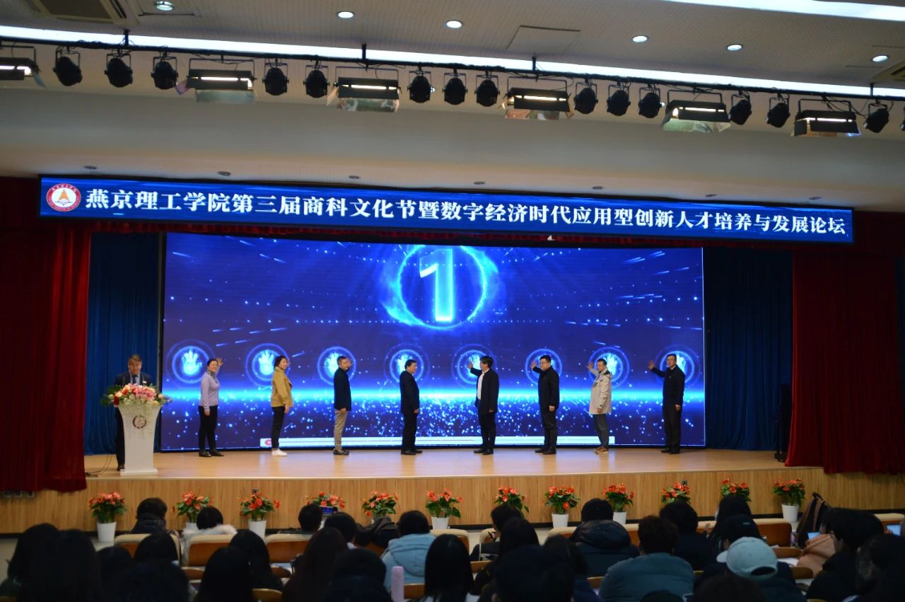 (与会嘉宾共同启动燕京理工学院第三届商科文化节)
