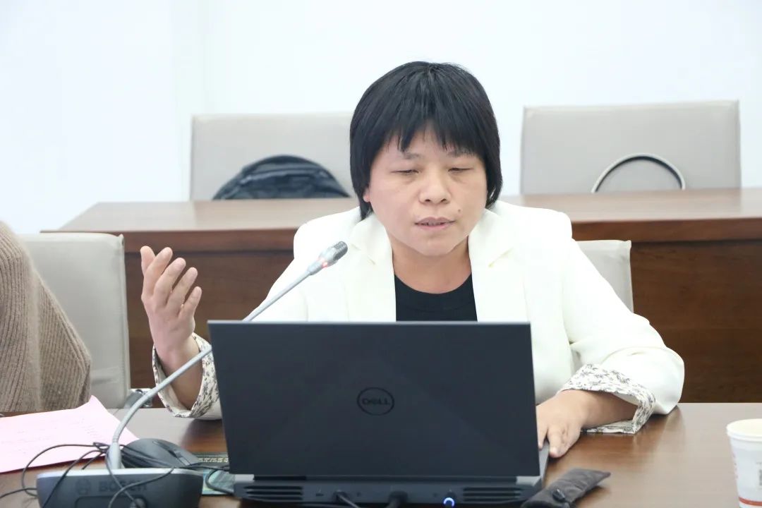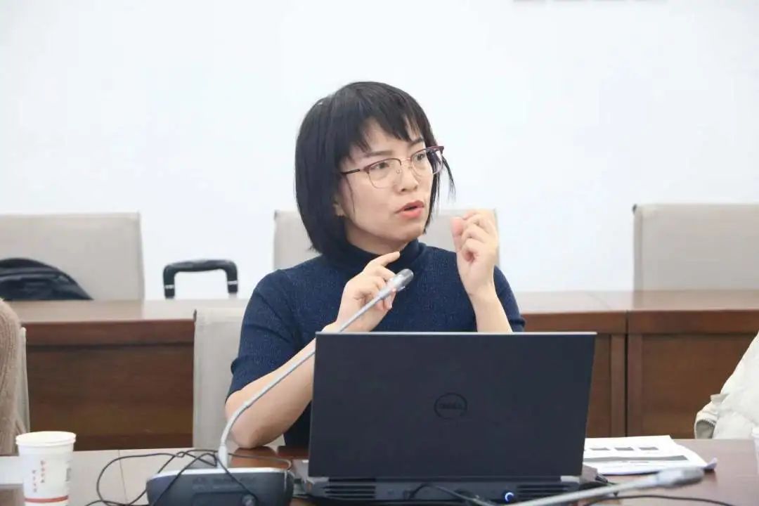 (数字经济专业教师罗智霞向与会专家和领导汇报《数字经济专业人才培养方案》)