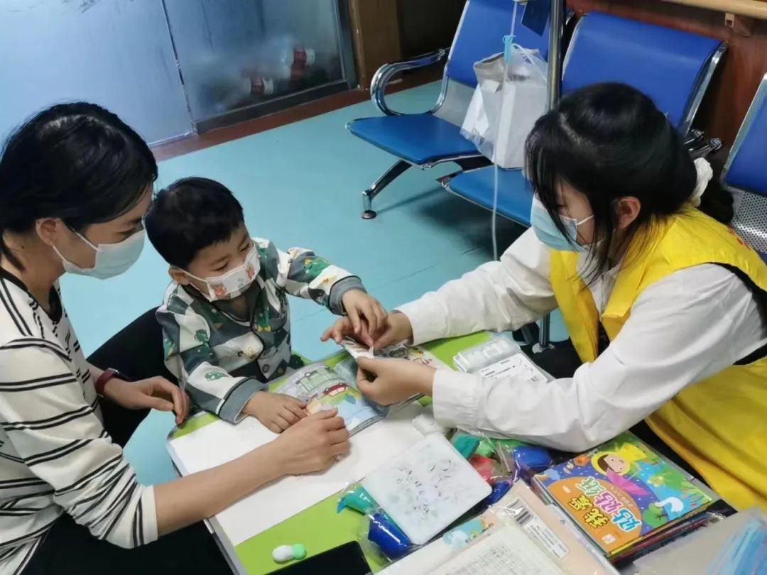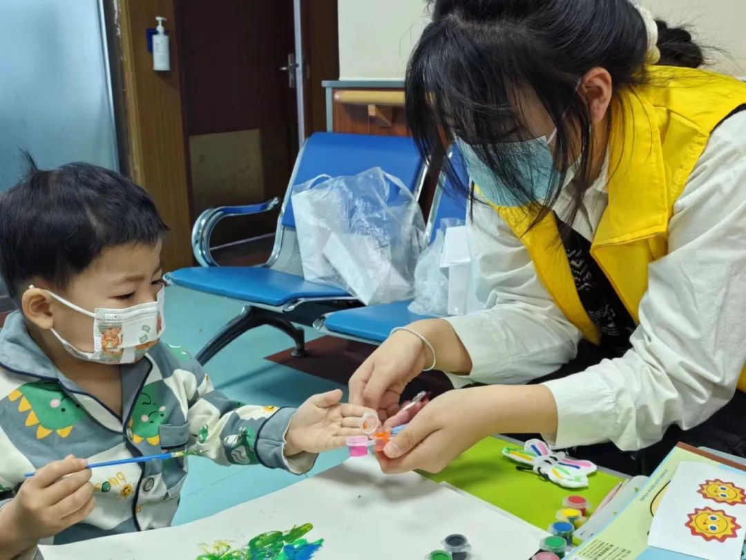 在明亮的儿童病房内,志愿者们不仅陪伴小朋友们做游戏、学习绘画技巧,还为小朋友们讲故事,从而丰富小朋友们的想象力。在志愿者们耐心地陪伴下,小朋友们的脸上都绽放出了灿烂的笑容。志愿者们帮助小朋友们在配合治疗身体的同时丰富了自己的精神世界,让每一位小朋友都感受到了志愿者们的关爱和鼓励。同时,志愿者们也秉承雷锋精神,传递着乐于助人、耐心对待他人的美好品质。